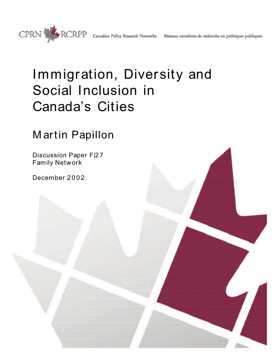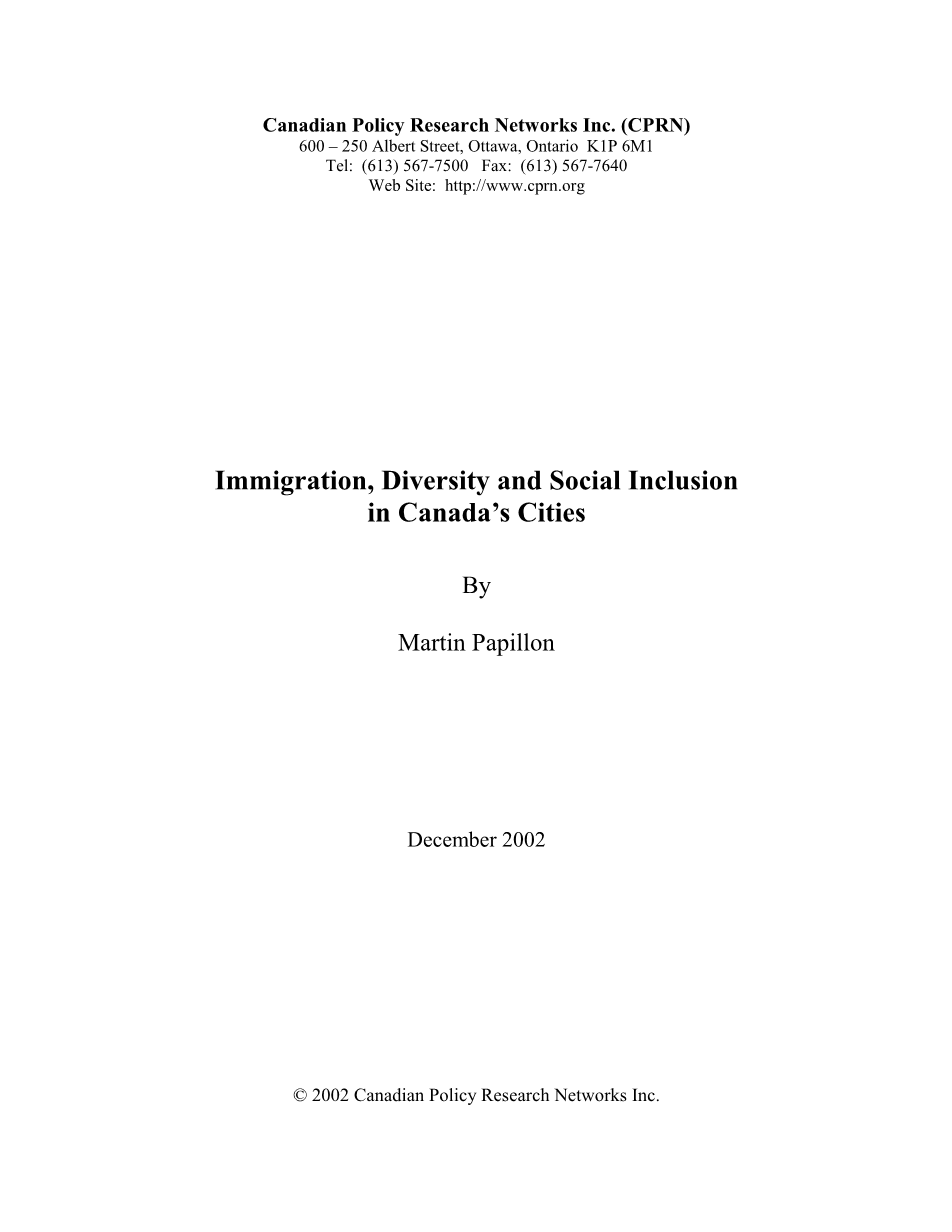 单位:Canadian Policy Research Networks Inc. (CPRN)