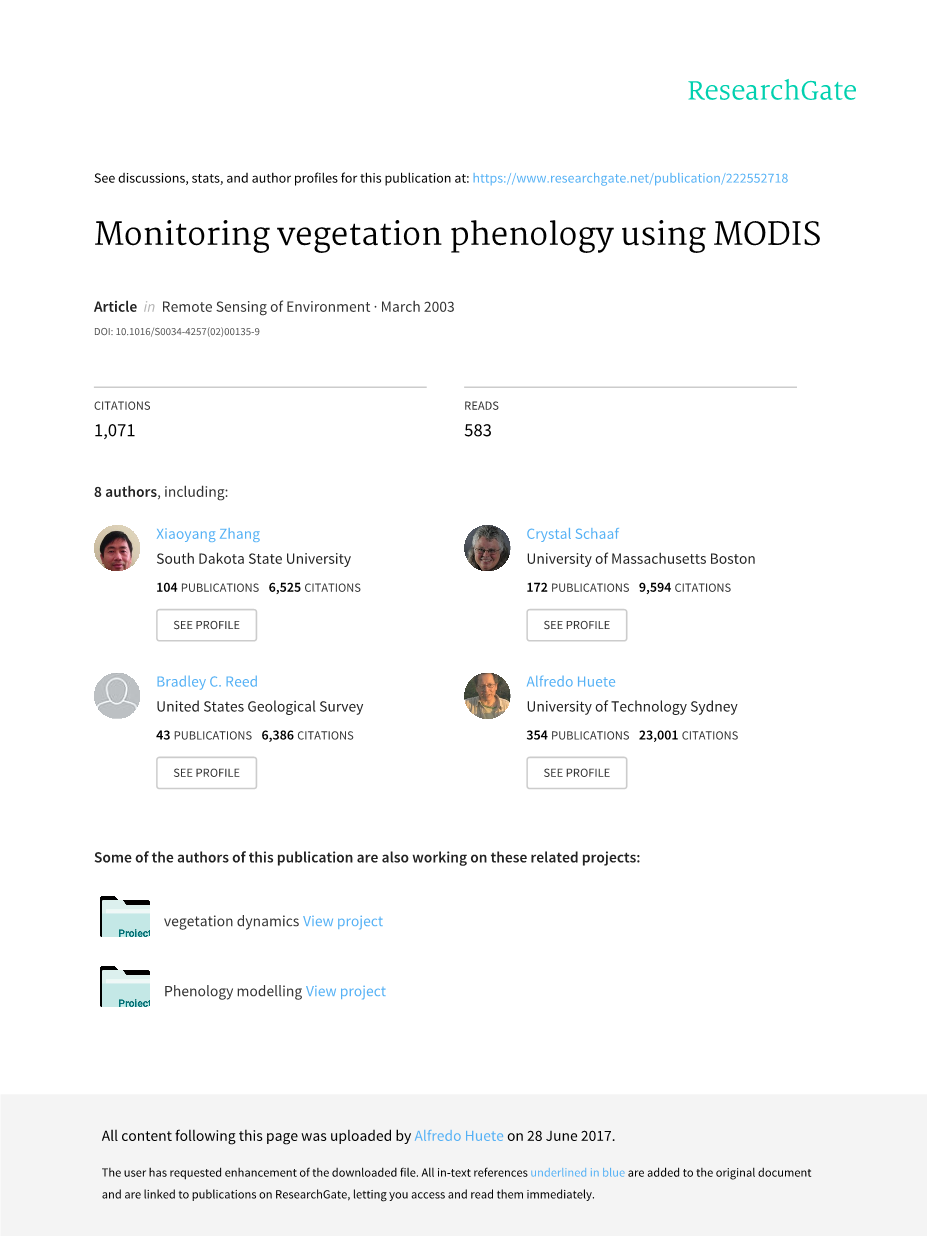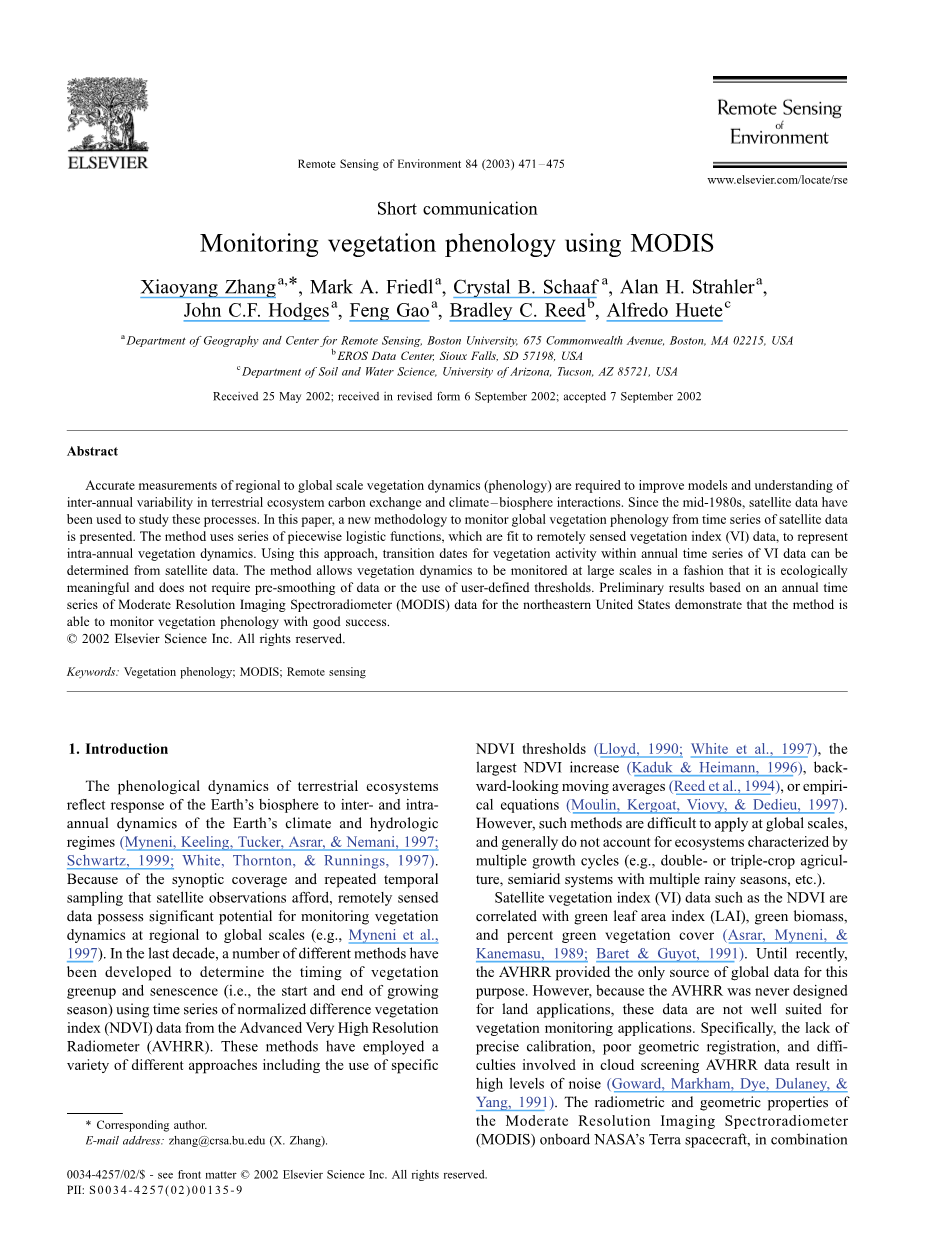 Xiaoyang Zhanga,*,Mark A. Friedla,Crystal B. Schaaf a,Alan H. Strahlera,