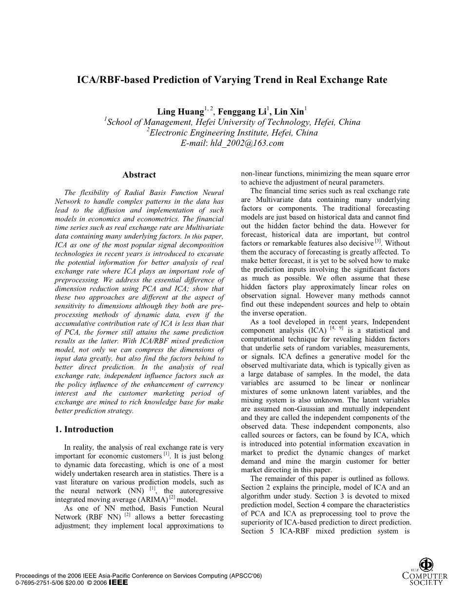 关键词:汇率,神经网络,金融时间序列,ICA/RBF模型