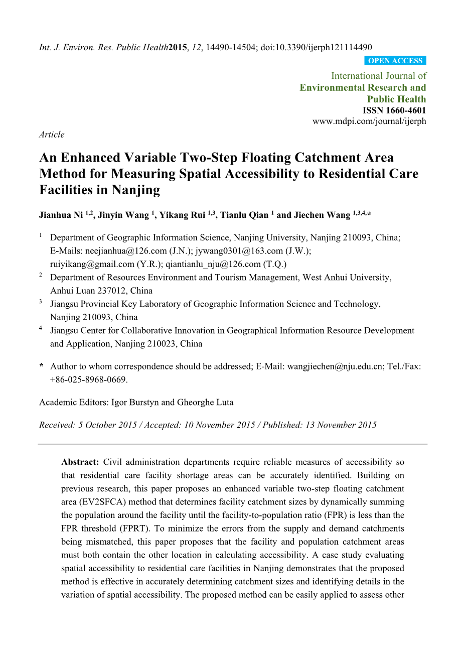 在本文中,我们提出了一个增强的变步浮动搜索区(EC2SFCA)的方法,它既克服了流域的大小计算不准确的问题,同时也最大限度地减少了错误,从供给和需求不匹配的搜索区,相比V2SFCA方法。第二部分详细介绍了数据来源、方法的步骤、参数设置和空间可达性计算。第三部分比较分析了在住宅保健设施在这个空间可达性研究V2SFCA和EC2SFCA方法产生的结果差异(物)在南京。第四部分讨论了需要进一步研究的问题,最后一节总结了本文的贡献。