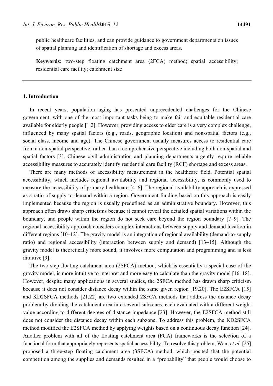 近年来,人口老龄化给中国政府带来了前所未有的挑战,其中最重要的任务之一就是为老年人提供公正、公平的住宿服务。然而,提供老年人护理是一项非常复杂的挑战,受许多空间因素(如道路、地理位置)和非空间因素(如社会阶层、收入和年龄)的影响。中国政府通常是从非空间的角度来衡量住院治疗的获取情况,而不是综合考虑非空间和空间因素。中国民政部门和规划部门迫切需要可靠的无障碍措施,以准确地识别住宅护理设施的短缺和过剩地区。