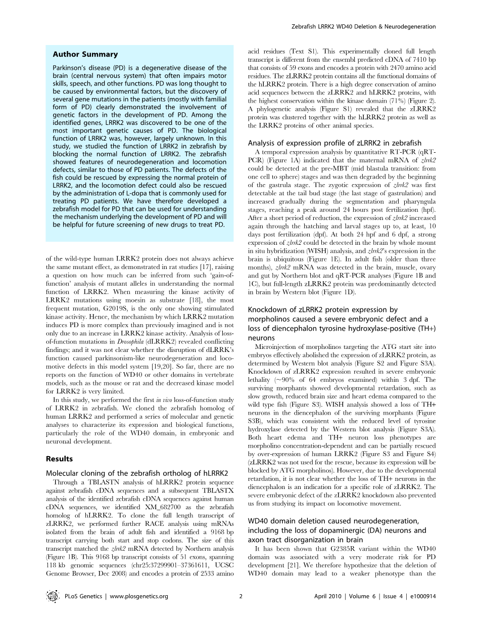 结果: h LRRK2的斑马鱼直向同源物的分子克隆