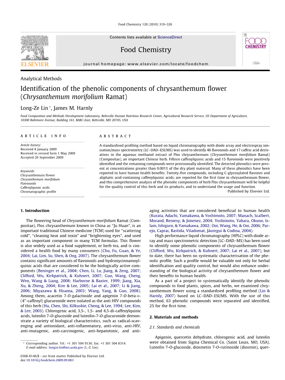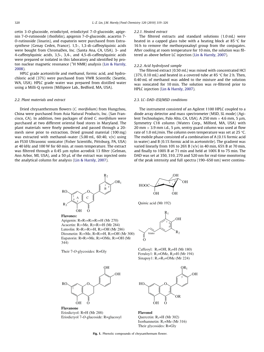 作为一个系统地确定食品植物,香料和草药中酚类化合物的项目的一部分,我们基于LC-DAD-ESI / MS的标准化分析方法对菊花进行了检测[19]。通过这种方法,63种酚类化合物被分离并鉴定出来,其中首次发现了25种分类化合物。