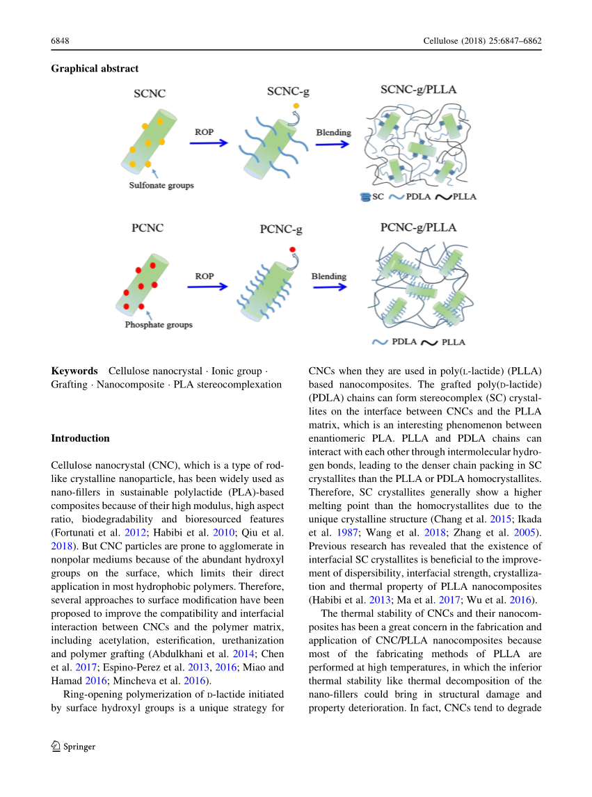 纳米纤维晶,离子基团,接枝,纳米复合材料,聚乳酸立体复合材料;