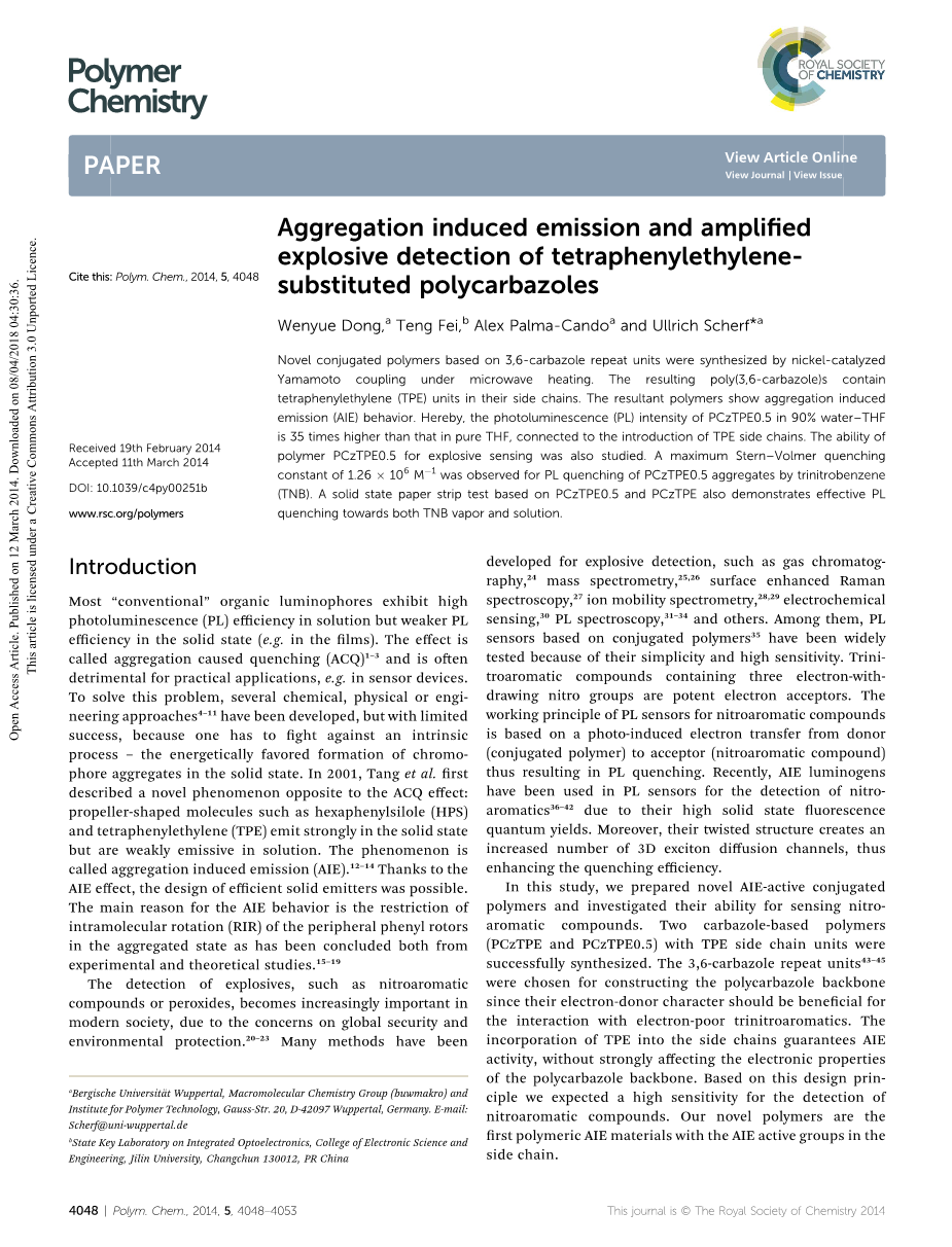 原文作者:Wenyue Dong,a Teng Fei,b Alex Palma-Candoa and Ullrich Scherf