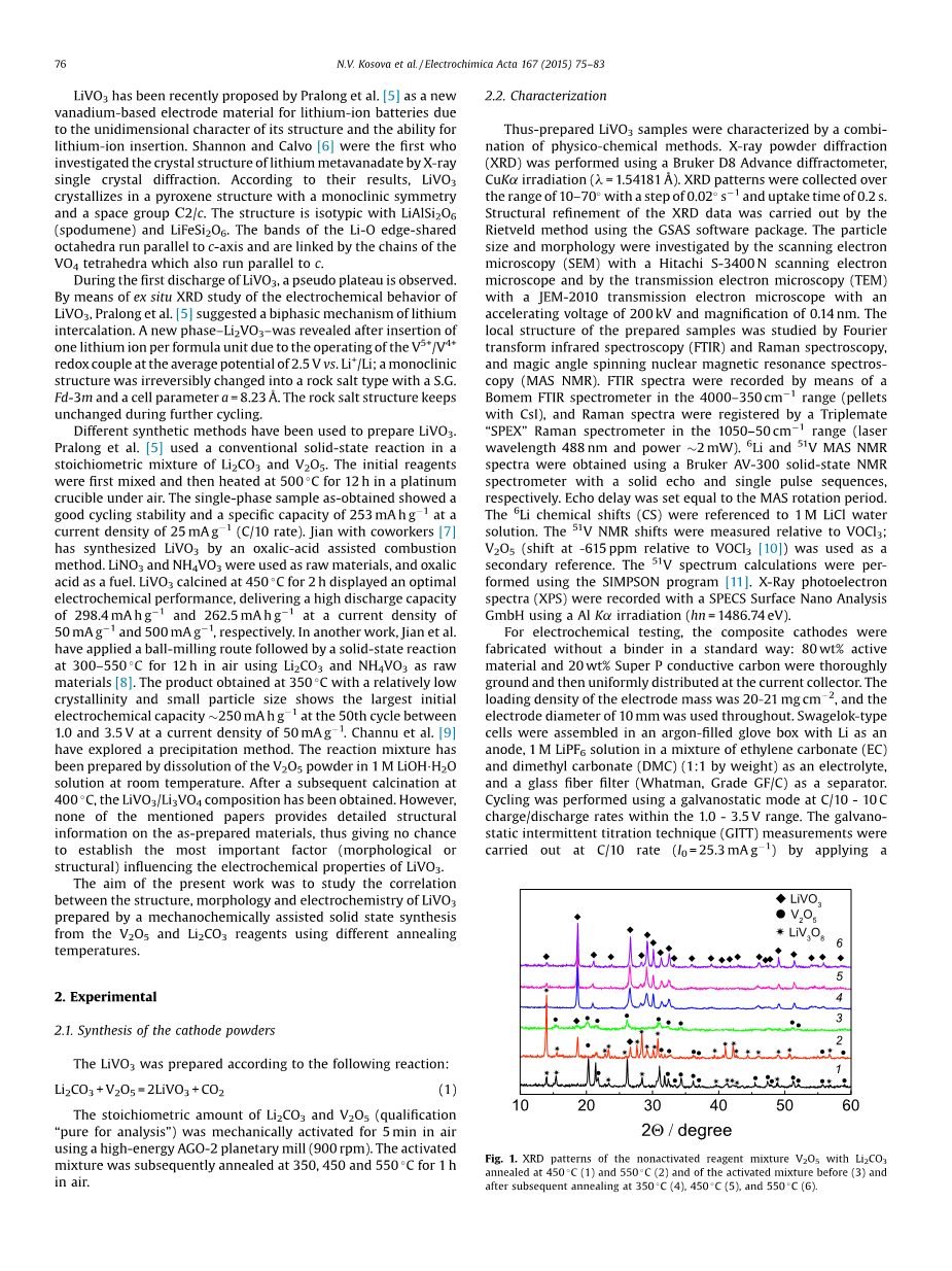 关键词:LiVO3;机械激活;6 Li和51 V MAS NMR;循环;GITT