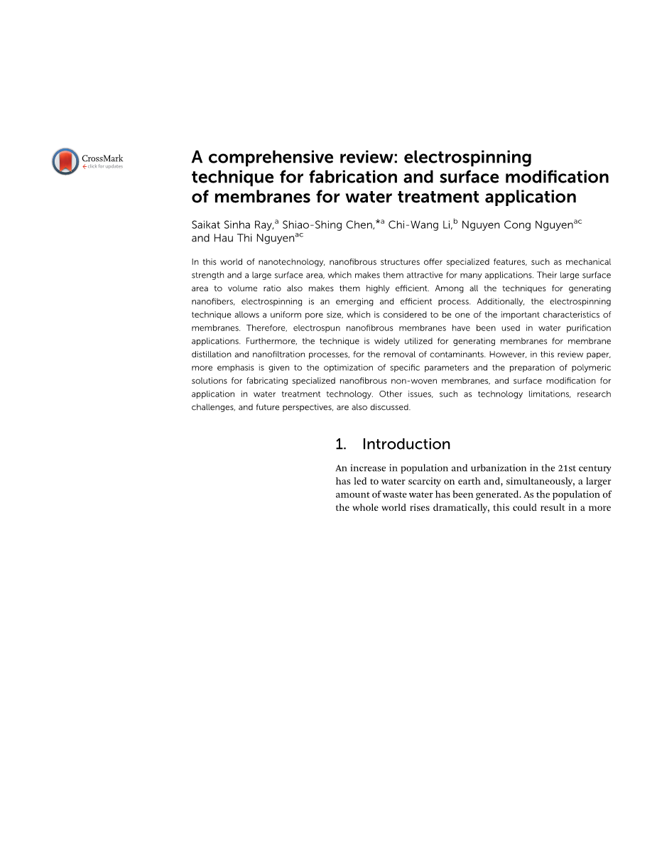 在这篇综述文章中,已经基于一些关键的废水处理技术提出了彻底的研究,并且已经显示电纺膜如何在水净化技术中起关键作用。