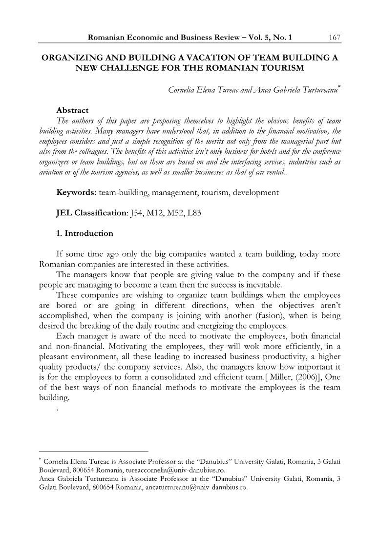 全美不动产协会的秘书长旅游机构(阿娜特)估计,商业市场旅游在今年年底将达到3亿欧元,但这一数字可能会更高,如果阿娜特官员和其他专业协会决定将包括在商业旅游团队建设市场,可能达到2亿欧元。[Turtureanu,(2008)]旅行社的团队建筑业务领域,发展潜力巨大,增长从2000年开始每年两位数字,从9.000的人组织的旅行公司,2001年,已经达到了600.000以上的离职这样的旅行,2008年肯定会有一个在2009年大幅下降。