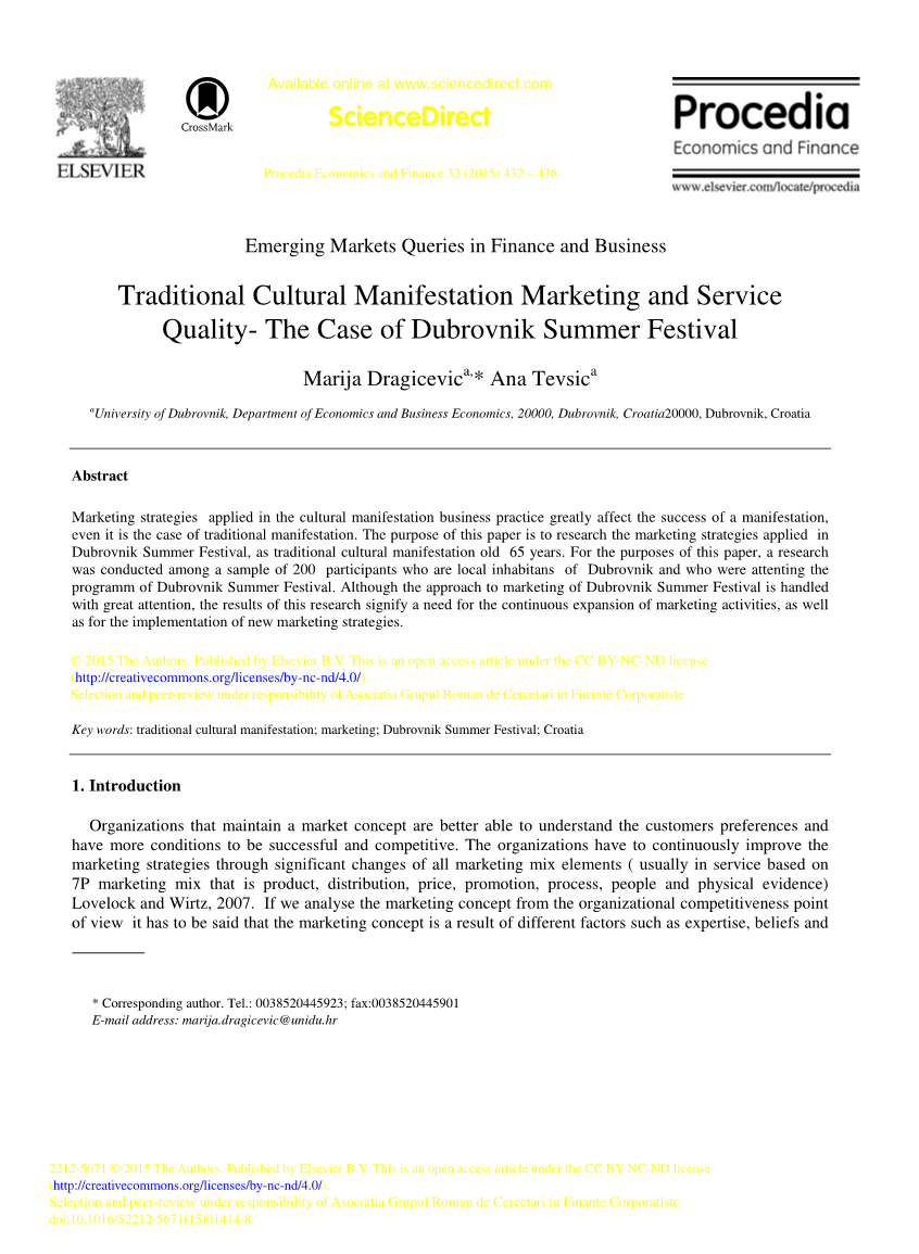 Traditional Cultural Manifestation Marketing and Service Quality- The Case of Dubrovnik Summer Festival