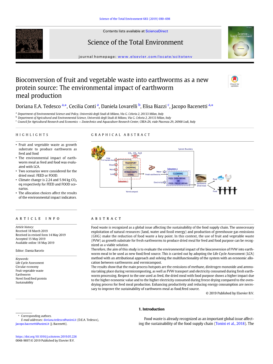 Doriana E.A.Tedesco a,⁎,Cecilia Conti a, Daniela Lovarelli b, Elisa Biazzi c, Jacopo Bacenetti a,⁎