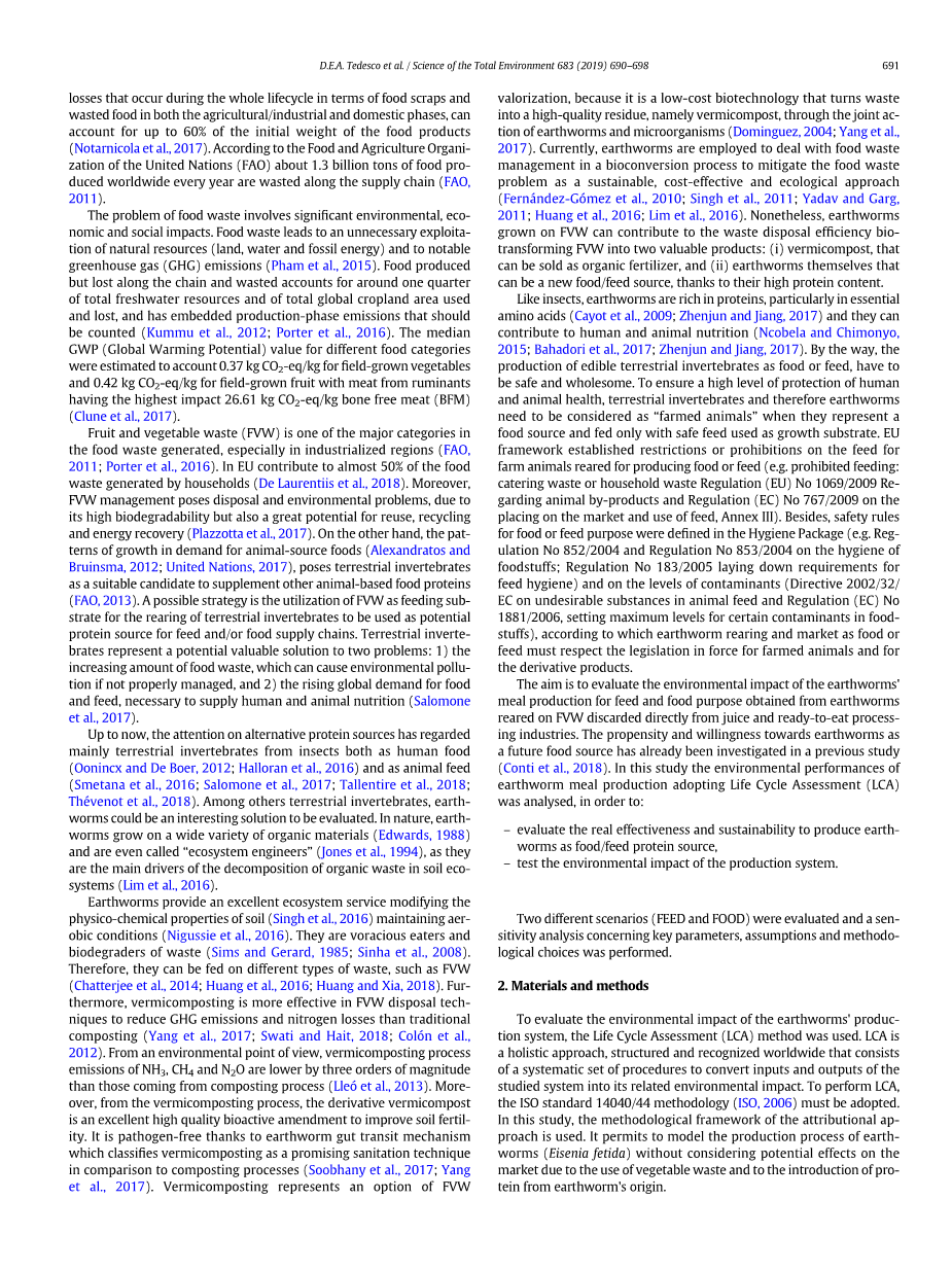 本研究的内容是FVW生物转化为干蚯蚓粉作为一种新型食品和饲料蛋白来源的环境概况。本研究采用LCA方法对意大利北部的一家小型蚯蚓生产工厂进行环境影响分析。