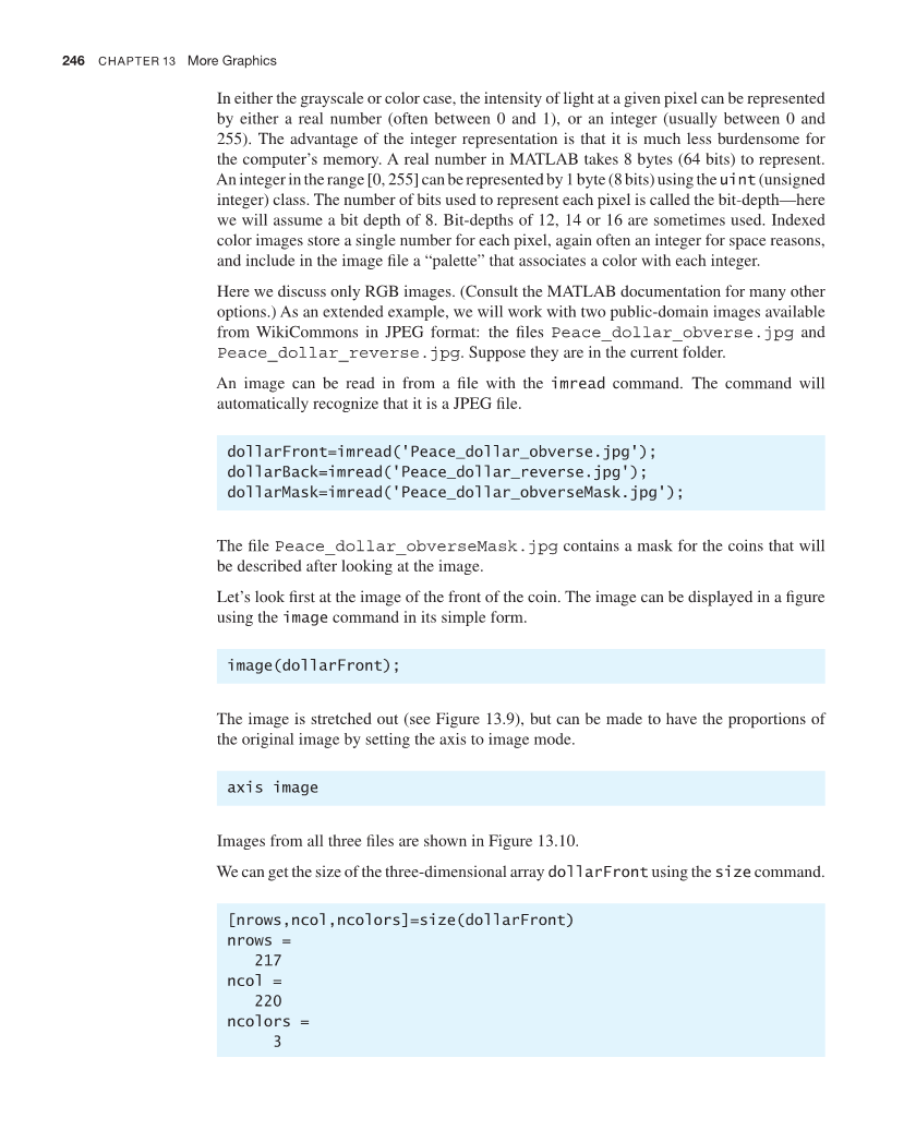 图13.10 从JPEG文件中读取图像,经过image命令和axis image命令建立正确的图像比例。这里每个图像都有217x220个像素点。
