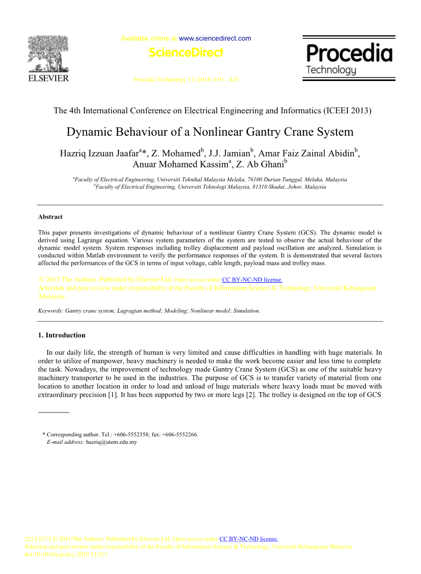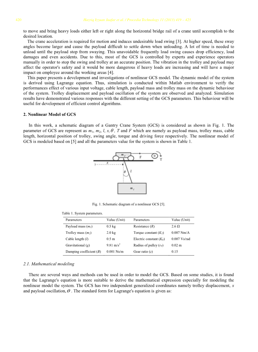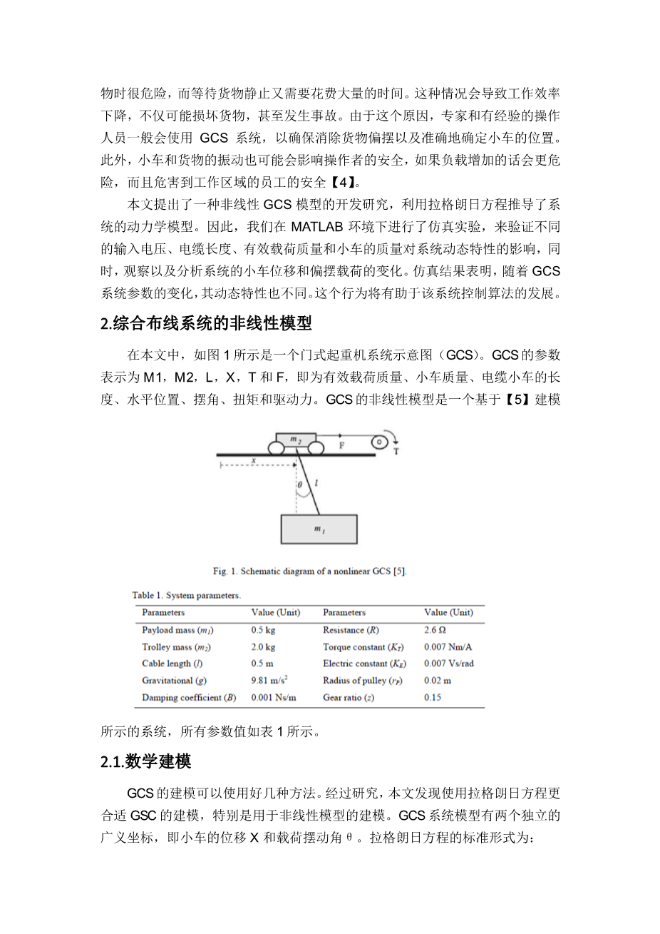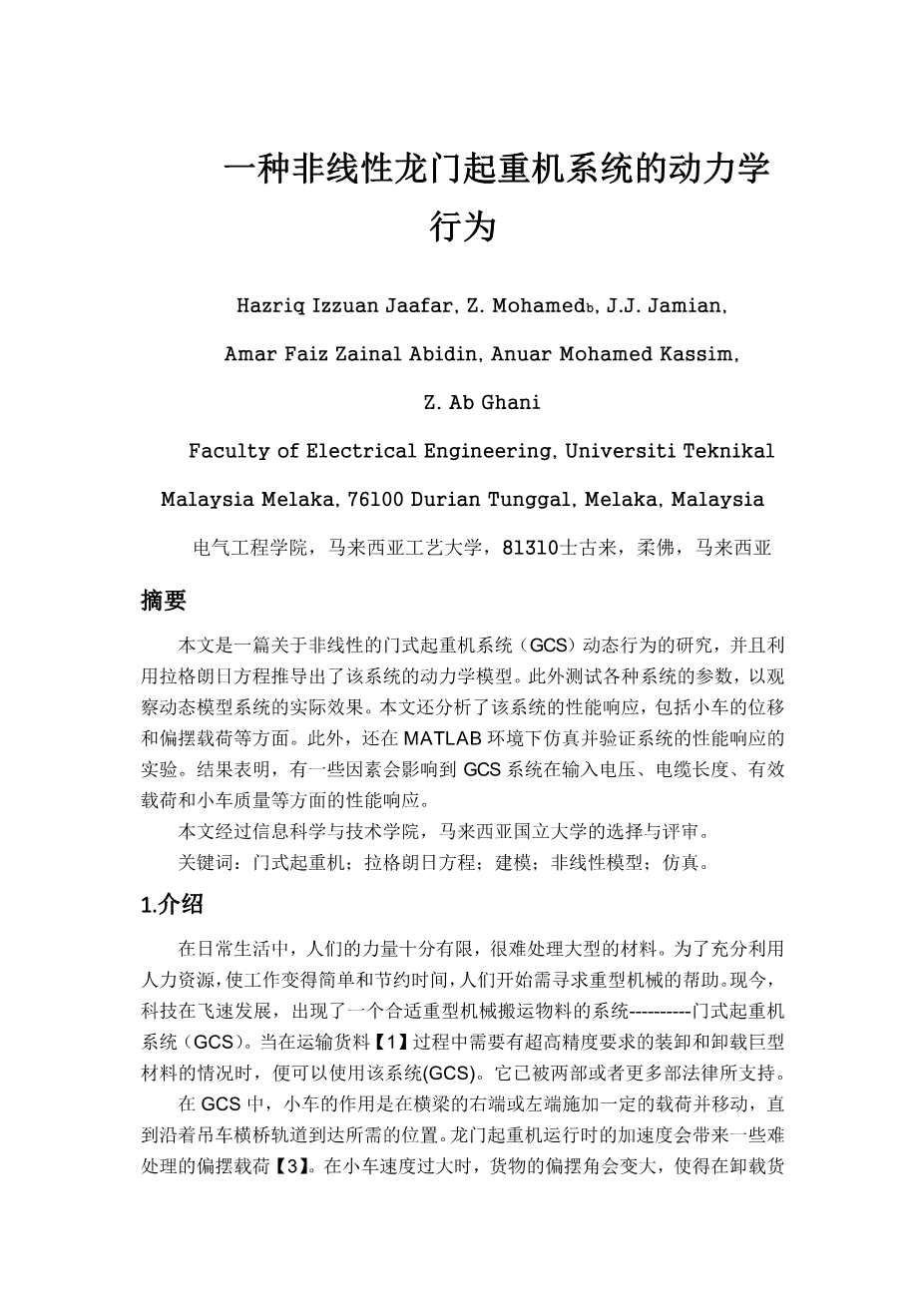 一种非线性龙门起重机系统的动力学 行为外文翻译资料