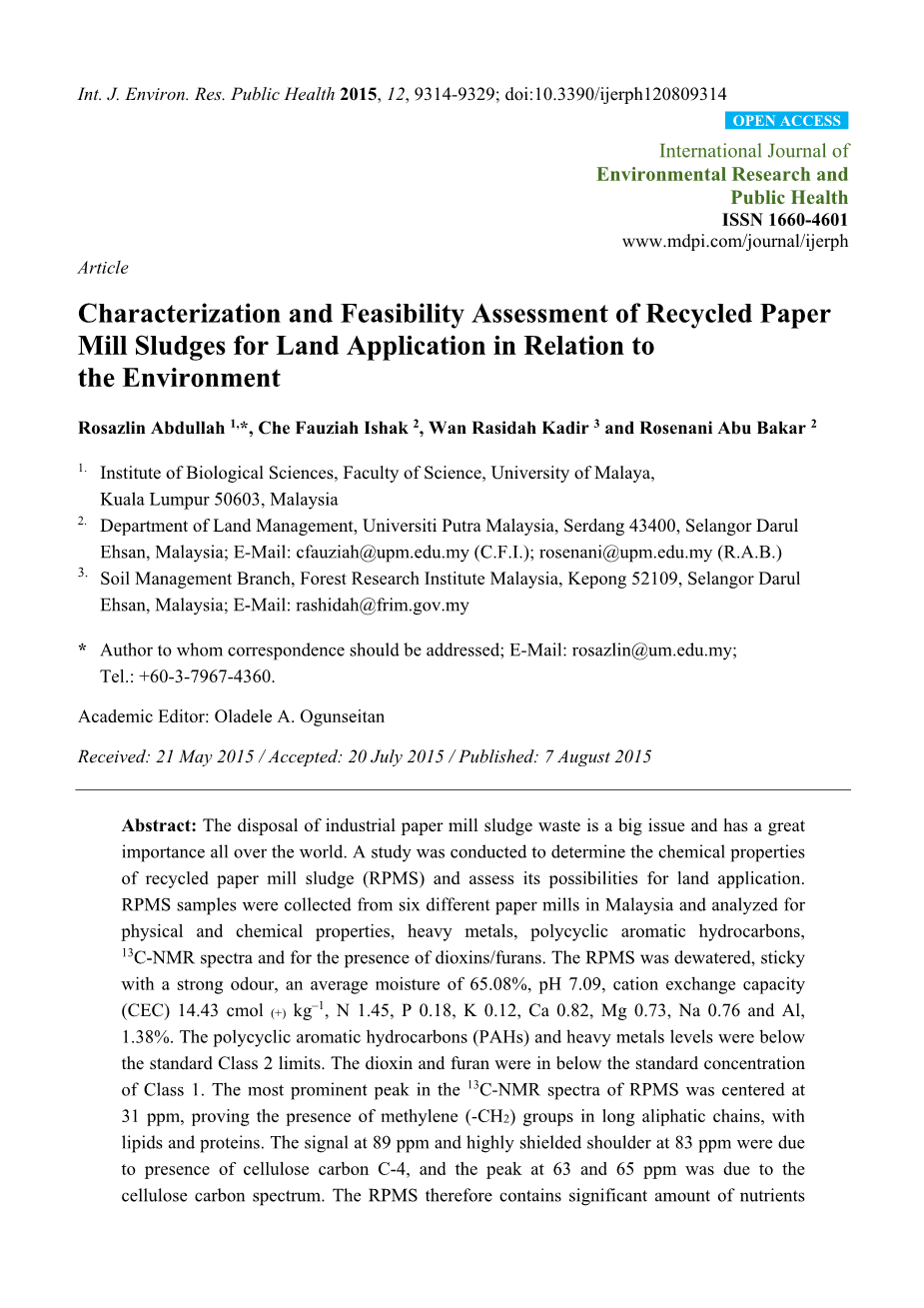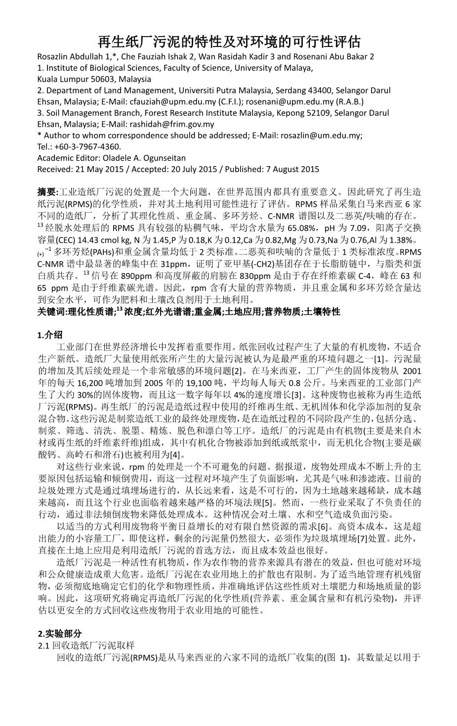 再生纸厂污泥的特性及对环境的可行性评估外文翻译资料