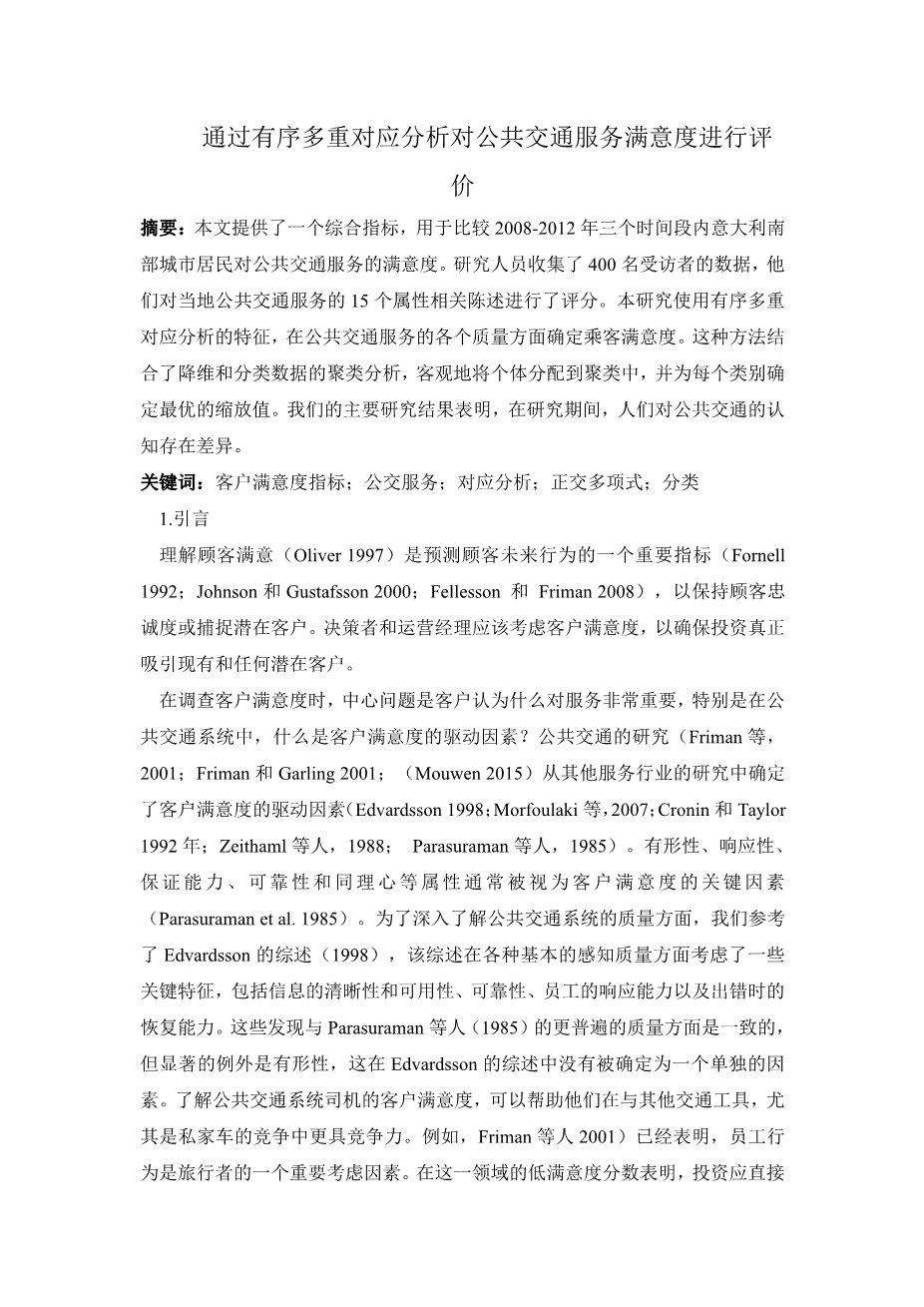 通过有序多重对应分析对公共交通服务满意度进行评价外文翻译资料