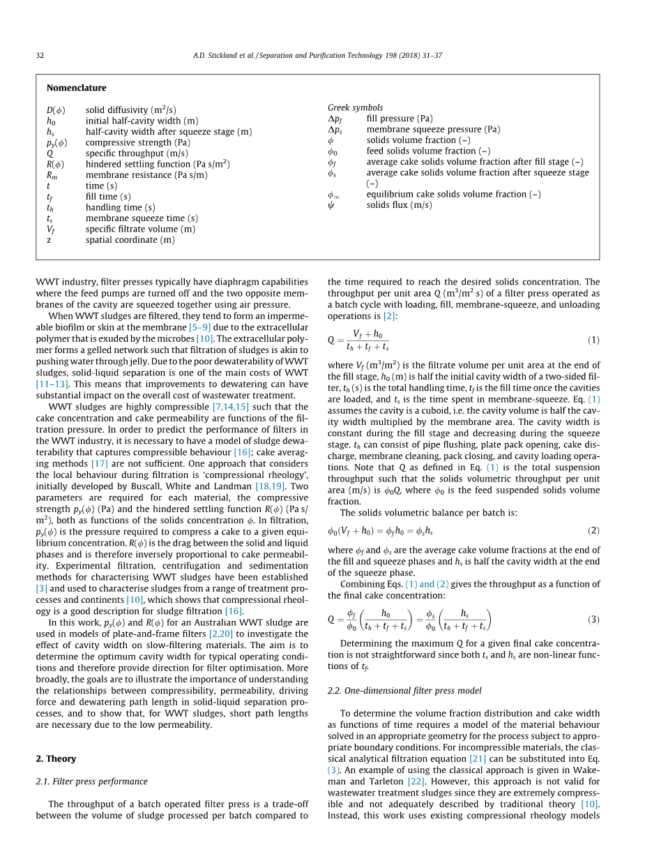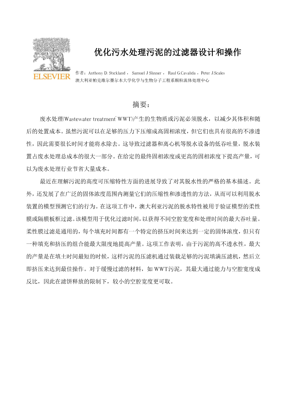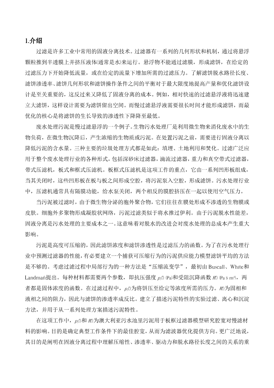 优化污水处理污泥的过滤器设计和操作外文翻译资料