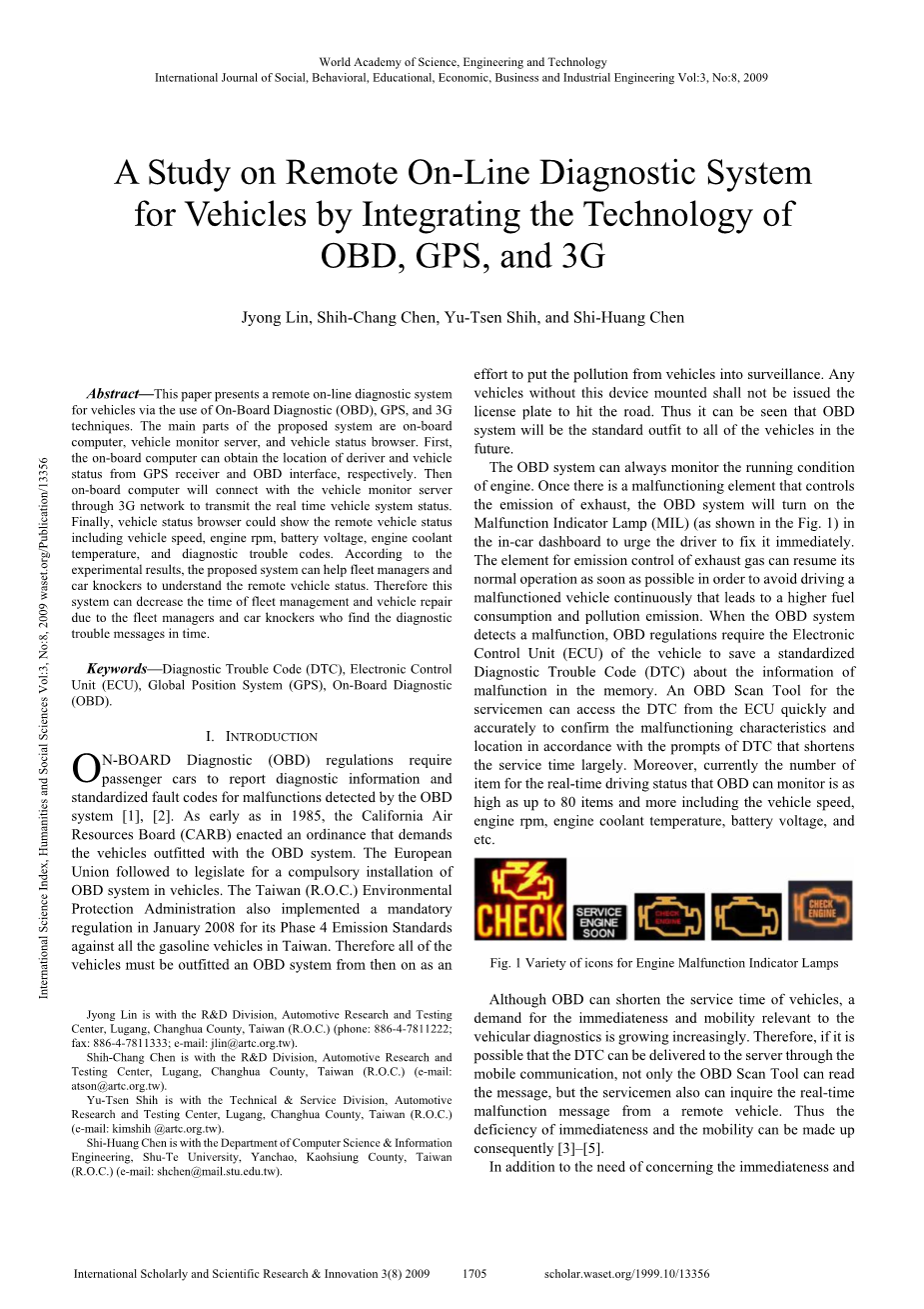 关键词:诊断故障代码(DTC),电子控单元(ECU),全球定位系统(全球定位系统),车载诊断(OBD)。