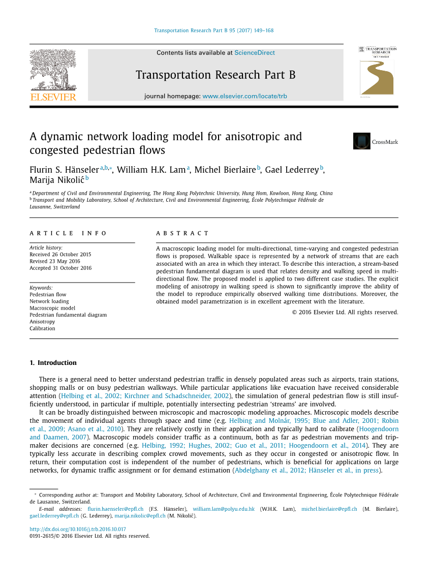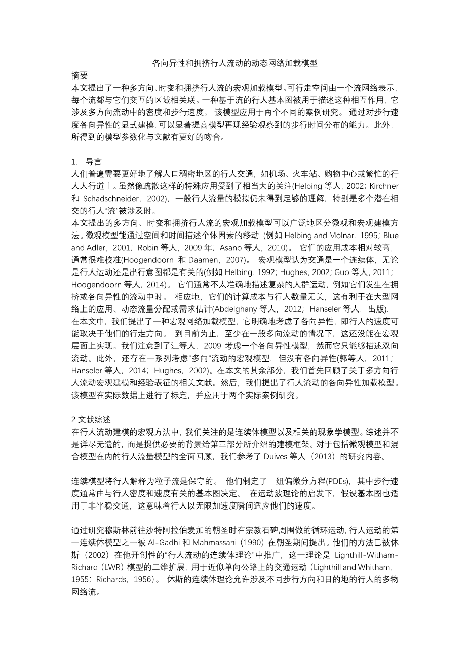各向异性和拥挤行人流动的动态网络加载模型外文翻译资料