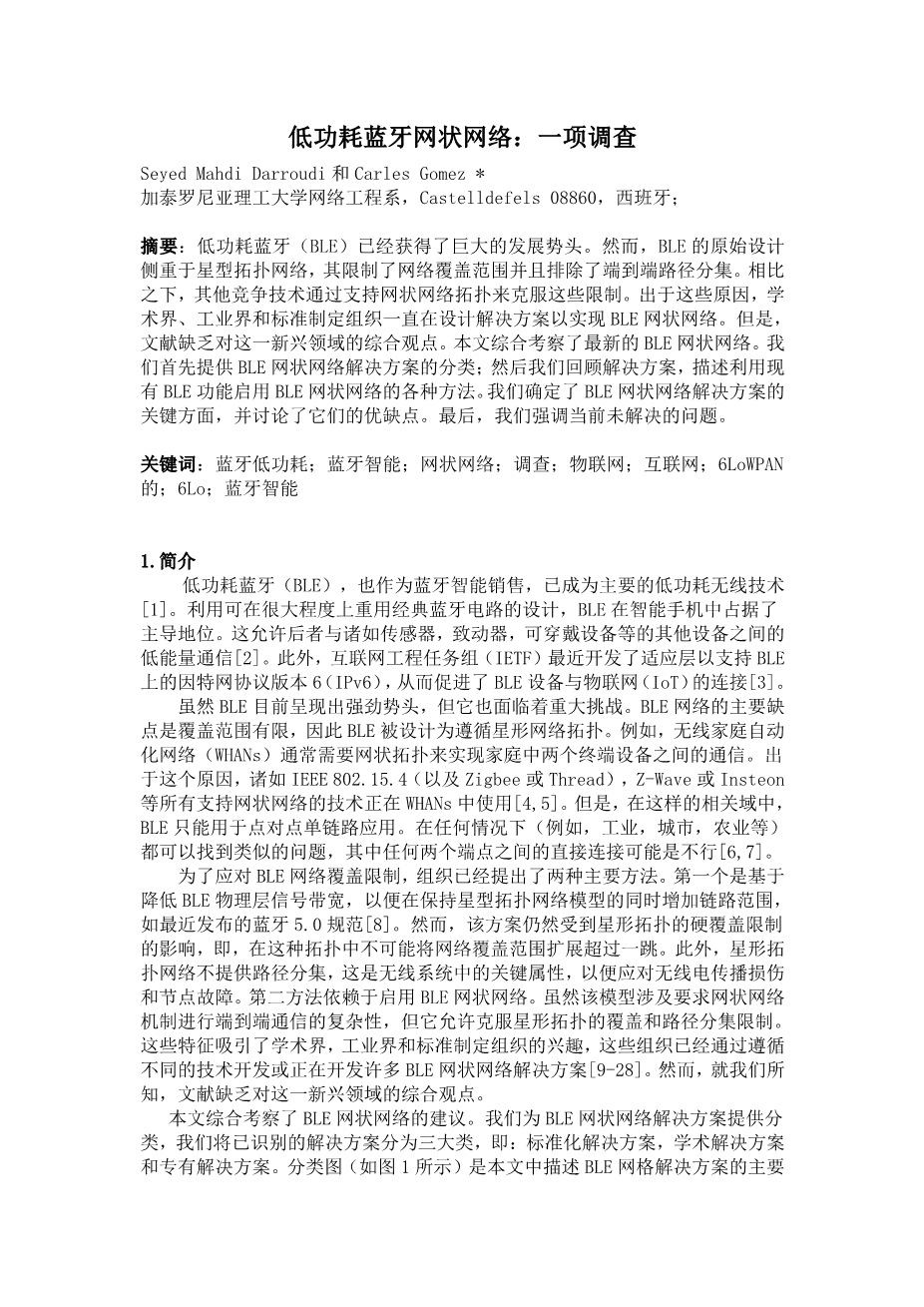 低功耗蓝牙网状网络: – -项调查外文翻译资料