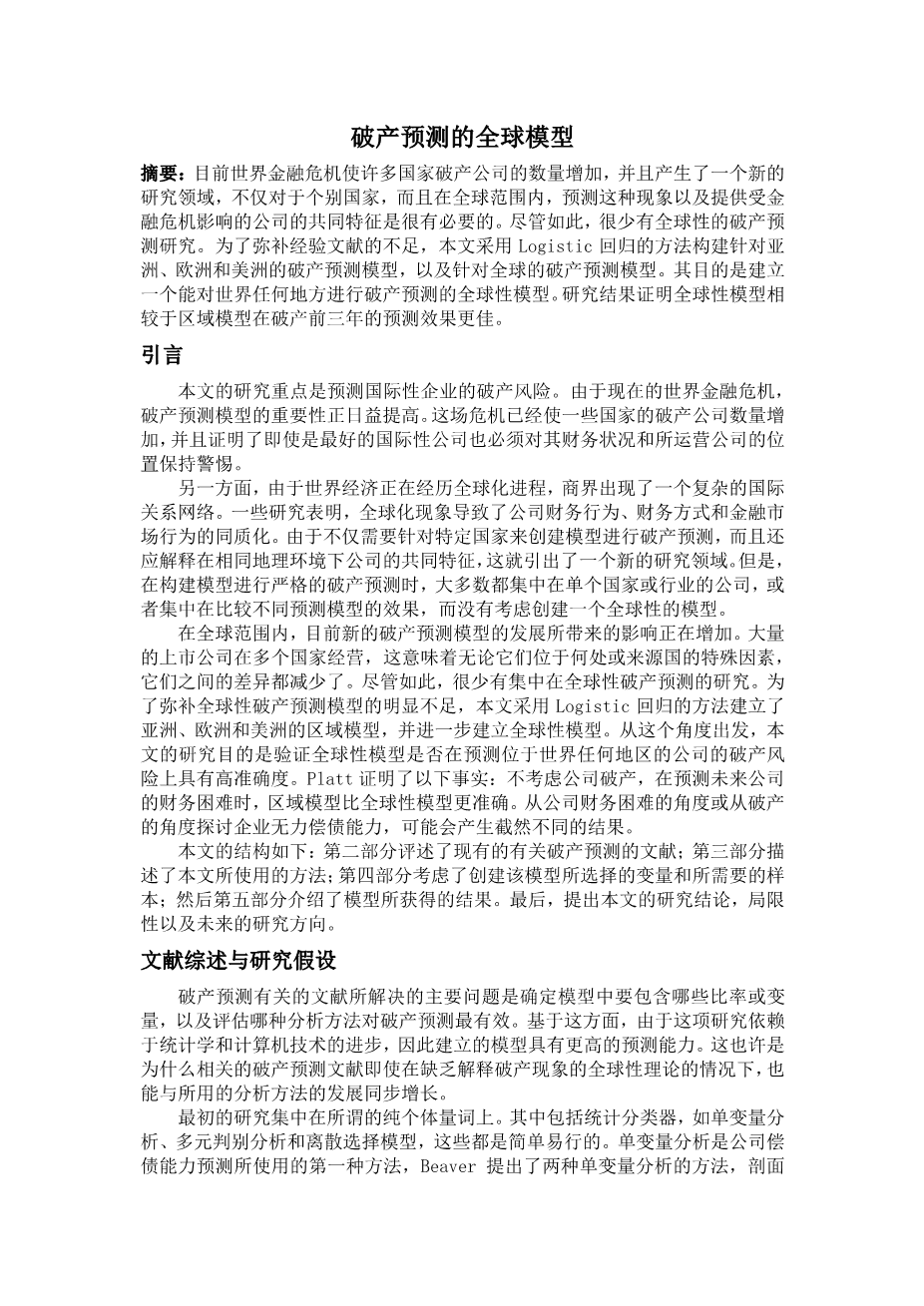 破产预测的全球模型外文翻译资料