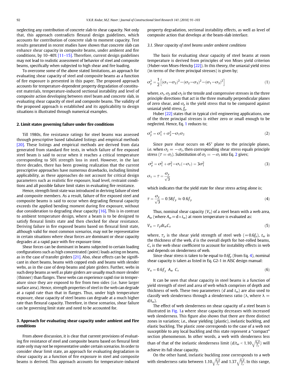 根据冯·米塞斯屈服准则(Huber-von Mises-hencky)推导出室温下钢梁的抗剪能力。在该理论中,单轴屈服应力为: