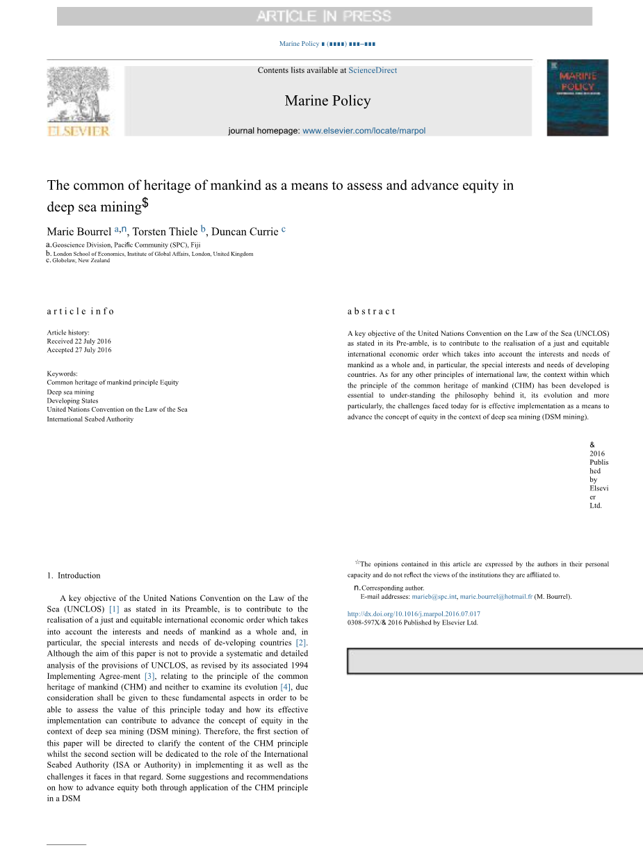 人类共同遗产作为评估和促进深海采矿公平的一种手段外文翻译资料