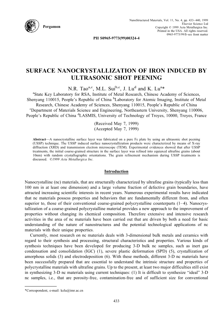N.R. Tao, M.L. Sui, J. Lu d and K. Lu