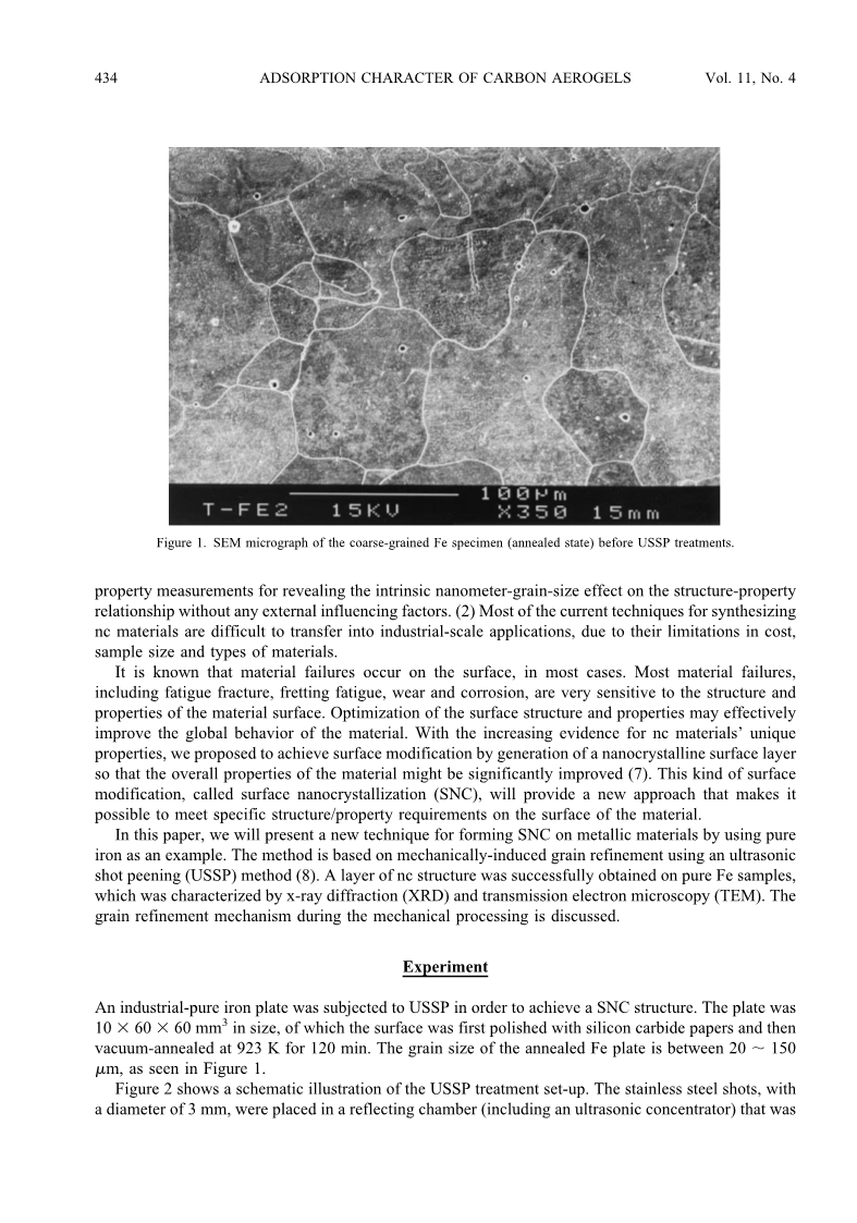 采用USSP处理方法在纯Fe板的表层成功地获得了纳米晶结构。经USSP处理后的表面层平均晶粒尺寸为10nm。这项工作表明,USSP处理为在金属材料表面形成纳米结构层提供了一种有效的方法,可用于改善材料的机械性能和耐腐蚀性能。