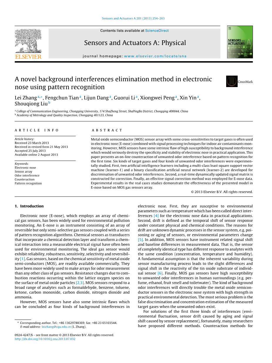 一种基于模式识别的电子鼻背景干扰消除方法外文翻译资料