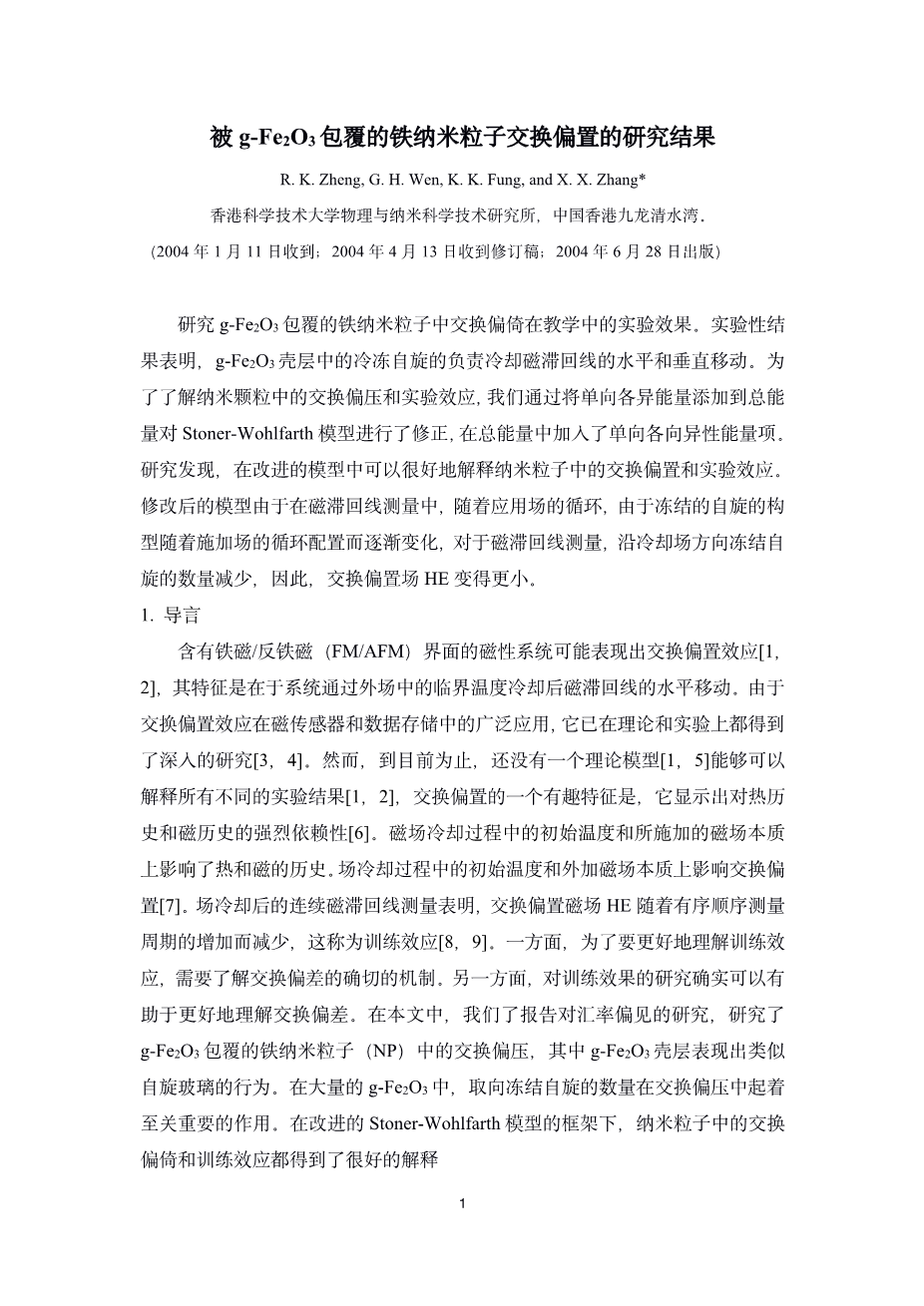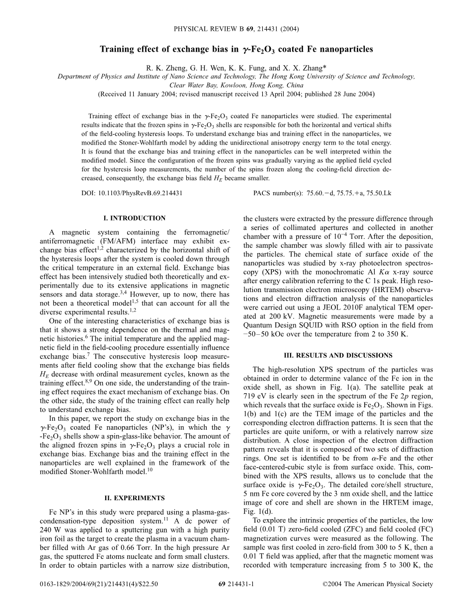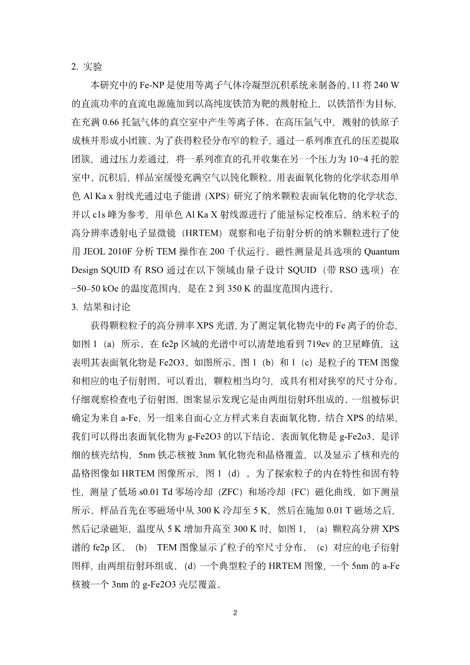 被g-Fe2O3包覆的铁纳米粒子交换偏置的研究结果外文翻译资料