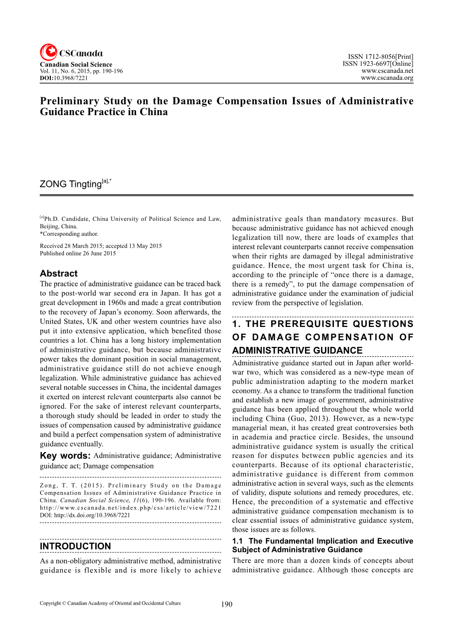 原文作者 ZONG Tingting 单位 China University of Political Science and Law, Beijing, China
