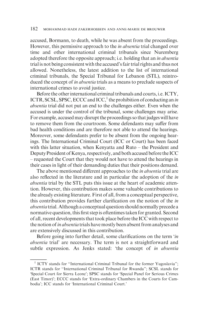 各国刑法比较分析简单的结论,即在普通法中的缺席诉讼中(对抗性)系统在很大程度上是不寻常的,而它们通常是在遵循审讯刑事诉讼制度的大陆法系中得到承认。 22 相比之下,在国际刑事法庭没有统一的缺席办法诉讼。 《国际军事宪章》第十二条法庭 (IMT),据此指控的逃犯,事实上,已故的马丁·鲍曼被判处死刑.1946 年 10 月 1 日,24 明确规定了被告缺席,而前者的国际刑事法庭规约南斯拉夫(ICTY)和卢旺达问题国际刑事法庭(ICTR) 没有明确允许缺席审判。两个特设法庭而是含蓄地假定被告在场并规定作为被告的个人权利出庭的权利。尽管这些特设法庭的措辞和立法历史似乎反对在缺席审判中承认,尽管如此,法规并未绝对禁止此类审判。旁边的例外规定,其中重新确认可以在被告缺席的情况下进行指控(规则程序),两个法庭在特殊情况下都允许审判部分缺席,当被告明确缺席时并自愿放弃在初次见面后出庭的权利混合和混合法庭,例如柬埔寨法院特别法庭(ECCC) 或塞拉利昂特别法庭(SCSL)允许在特殊情况下在被告部分缺席的情况下进行审判。 31 近年来,黎巴嫩特别法庭(STL)允许在完全缺席的情况下进行诉讼的刑事法院被指责,遭到了很多批评。这是事实造成的根据 STL 章程,可以进行缺席审判不仅在被告自愿以书面形式放弃其权利的情况下在场或不被政府机构引渡,但即使他是逃犯或因任何其他原因无法找到他。