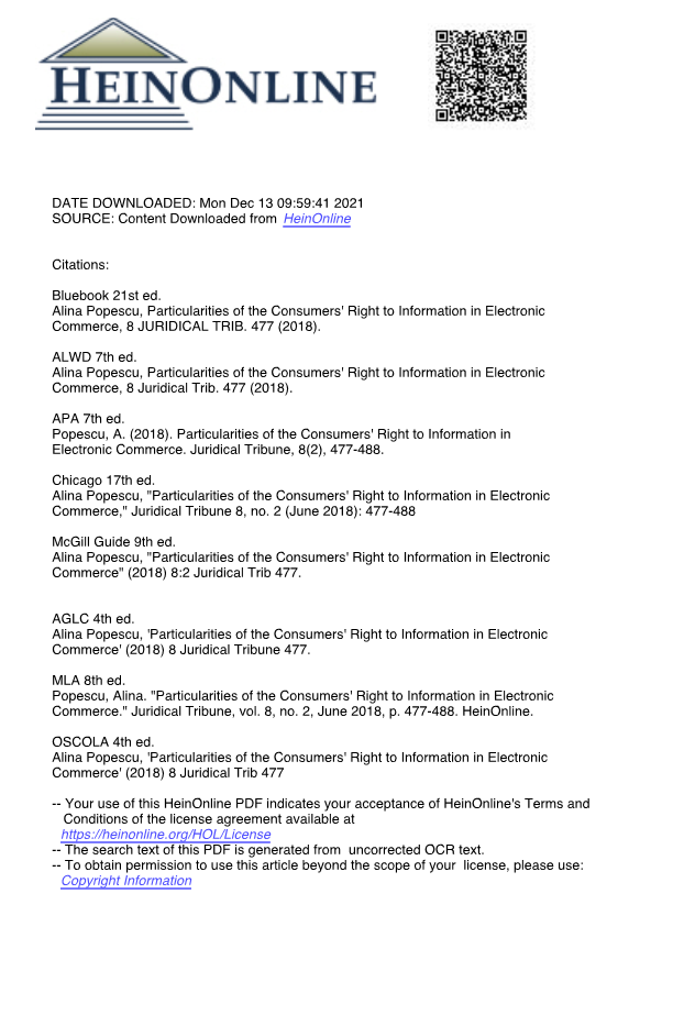摘要:个人信息权是一项基本权利,受到有效法律手段的保障和保护。同时,由于这是一项相对权利,在某些适当确定的情况下,它很可能受到明确的法律规定的限制。 保障和保护知情权是当局的责任,因此应促进个人在越来越多的经济和社会领域获取信息,以证明人们有利益。在这种情况下,可以看到,特定领域的立法行为规定了自动提供某些信息或使个人提供某些信息的义务,从而有效地获得信息的权利,而且在越来越多的情况下也通知经营者。信息在消费者权利方面很重要,既可以保护他们的经济利益,又可以保护他们的个人或集体的健康和安全。在消费者权益保护方面的某些规定,是指维护集体社会价值观和公共利益。该研究将涉及消费者是否受到保护,并被告知某些贸易行为和事实,这可能会使他/她处于脆弱的情况。