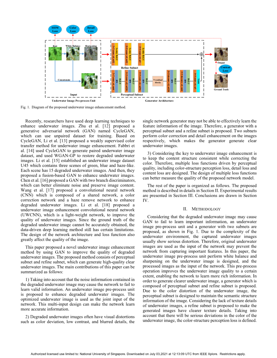 本文提出了一种新的水下图像增强方法,利用氮化镓来提高退化水下图像的质量。该方法由感知子网和细化子网两部分组成,能够生成高质量、清晰的水下图像。本文的主要贡献可以总结如下: