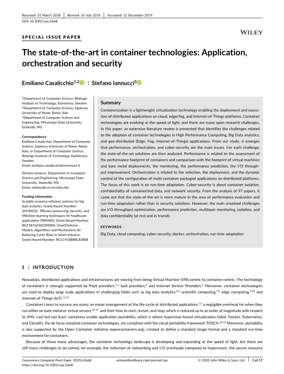 容器化是一种轻量级的虚拟化技术,使它能够在云、边缘计算/雾计算和物联网平台上部署和执行分布式应用程序。容器技术正在以光速发展,而且有许多开放的研究挑战。在本文中,提出了一个广泛的文献综述,它确定了与在高性能计算、大数据分析和地理环境中采用容器技术相关的挑战分布式(边缘计算、雾计算、物联网)应用程序。从我们的研究中可以看出,性能,编排,网络安全是主要的问题。对于每一个挑战,分析最先进的解决方案。