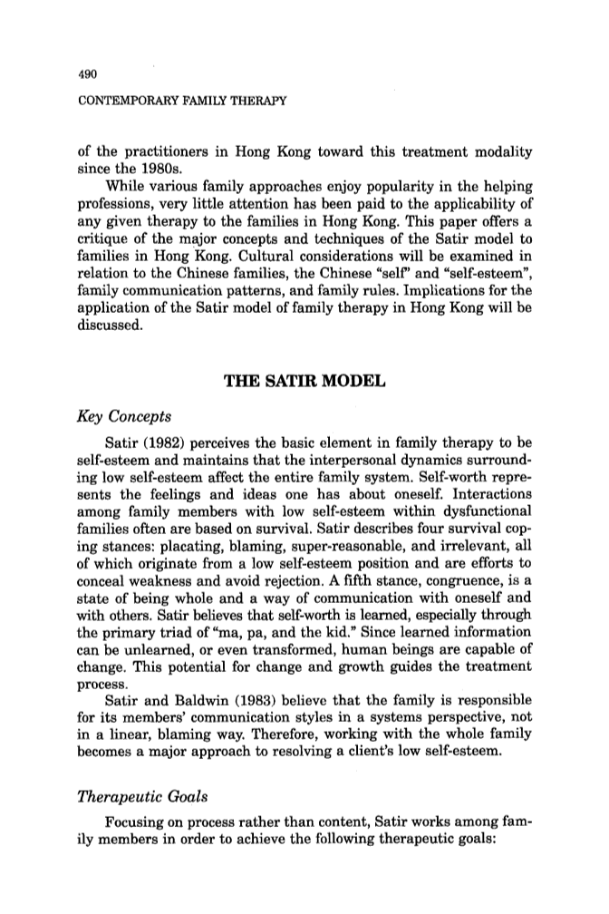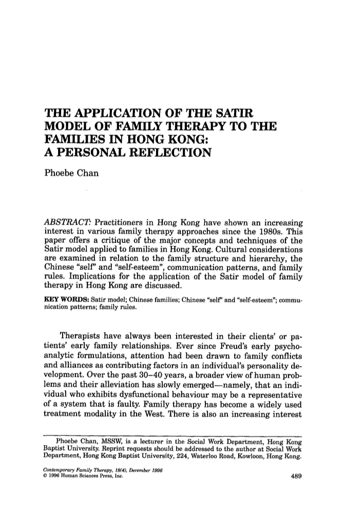 萨提亚家庭治疗模式在香港家庭的应用:个人反思