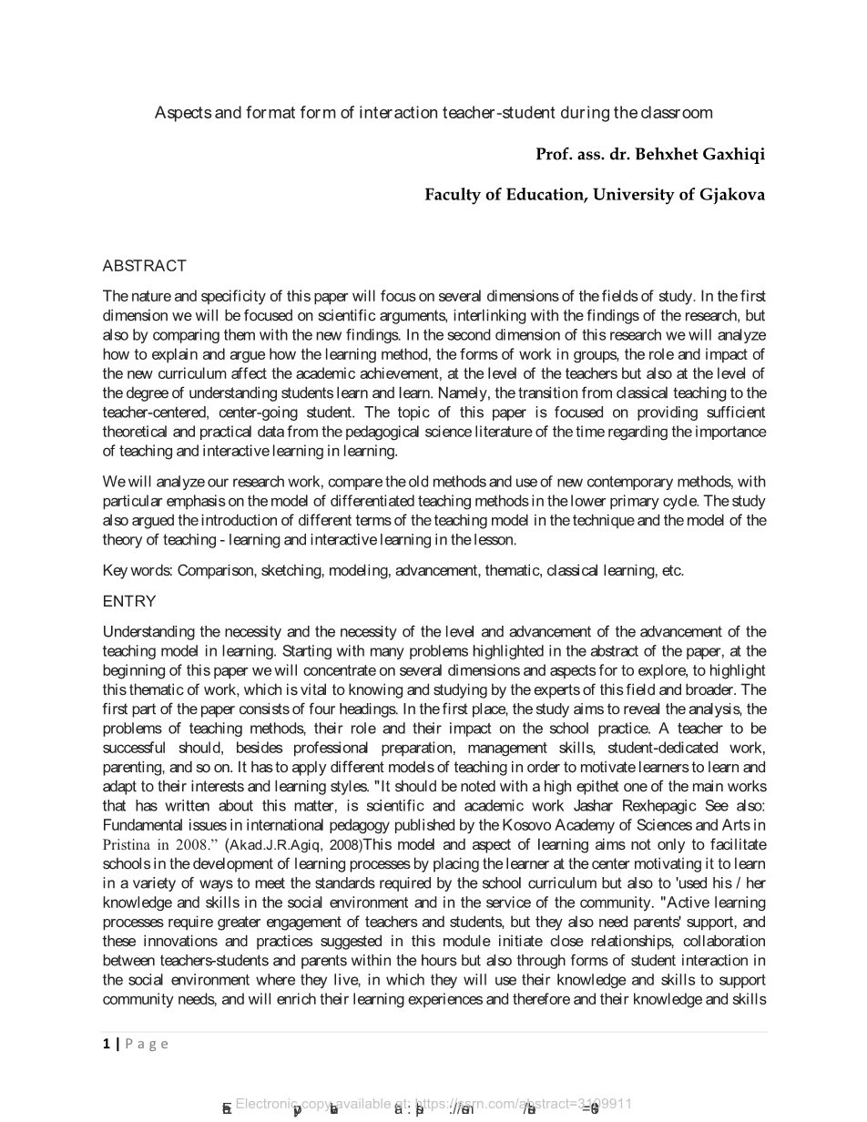 从本文摘要中强调的许多问题开始,我们将集中在几个层面和方面进行探讨,以强调这个工作的主题,对这个领域的专家来说是至关重要的认识和研究。本文的第一部分由四个标题组成。首先,研究的目的是揭示并分析教学方法的问题和它们的作用以及如何将这些问题解决。教学方法的问题,它们的作用和对学校实践的影响。一个教师除了专业准备、管理技能、学生专职工作外,必须应用不同的教学模式,以激发学习者的学习动力,适应他们的兴趣和学习方式。这个问题的主要著作之一是科学和学术工作Jashar Rexhepagic,由科索沃科学和艺术学院于2008年在普里什蒂纳出版普里什蒂纳在2008年出版的。这种学习模式和方面的目的不仅是为了促进促进学校发展的学习过程,也将学习者置于中心位置,激励其学习以各种方式学习,以达到学校课程所要求的标准,而且还要在社会环境中使用他/她的知识和技能,并为社区服务。