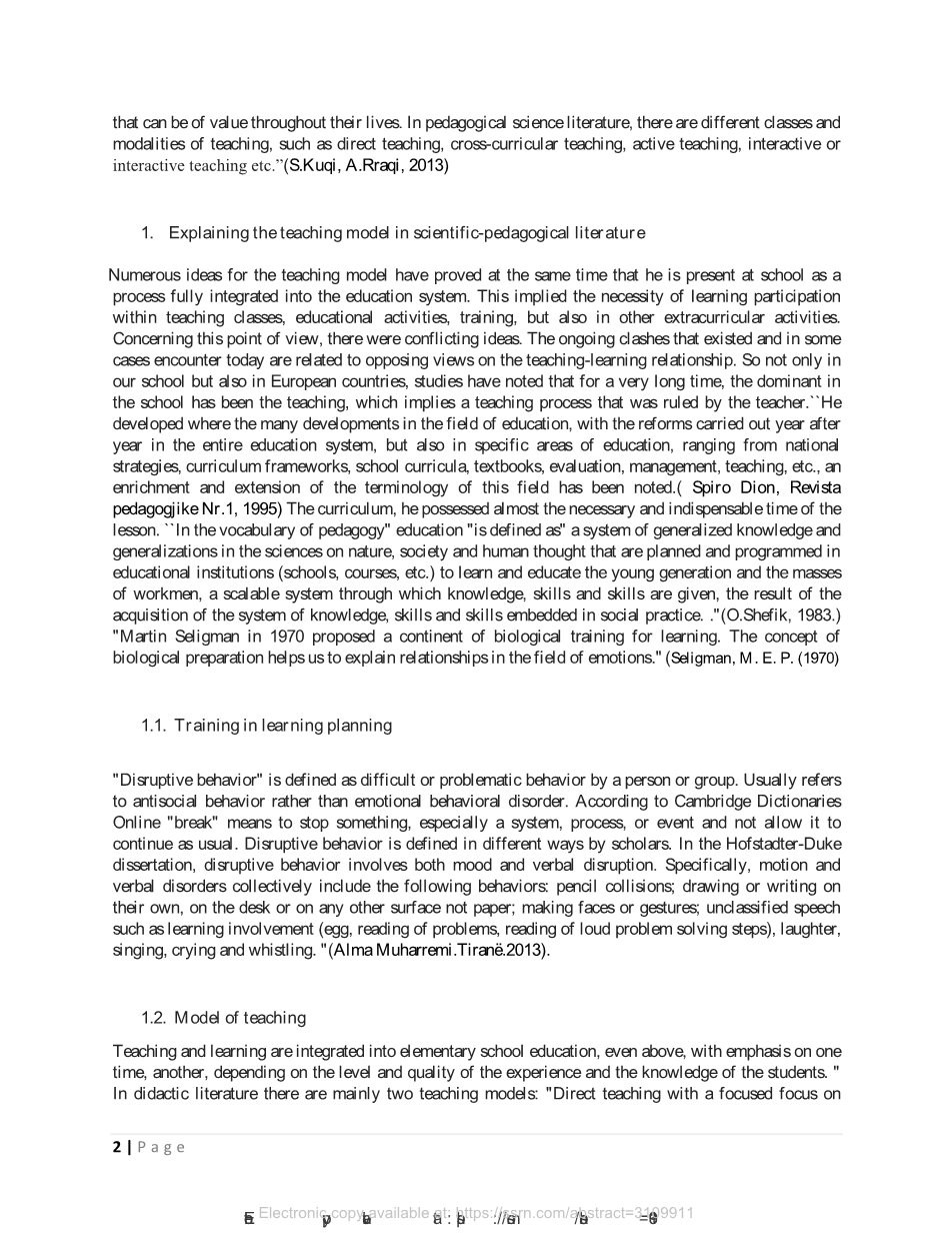 教和学融入了小学教育,甚至高于小学教育,取决于经验的水平和质量以及学生的知识。在说教文献中,主要有两种教学模式。直接教学的重点是迅速掌握事实、规则和形成技能,而科目的内容则被划分为易于采纳的小步骤,教学过程由教师监督的。在直接教学中,其目的是让学生参与审查和调查,这有助于以模式和抽象的形成和发展。教师通过向学生提问,引导他们发现和归纳,评估他们的反应。在教师扮演着促进者和主持人的角色,协调和组织与学生互动的学习过程。(Osmani, Sh., 1983.)
