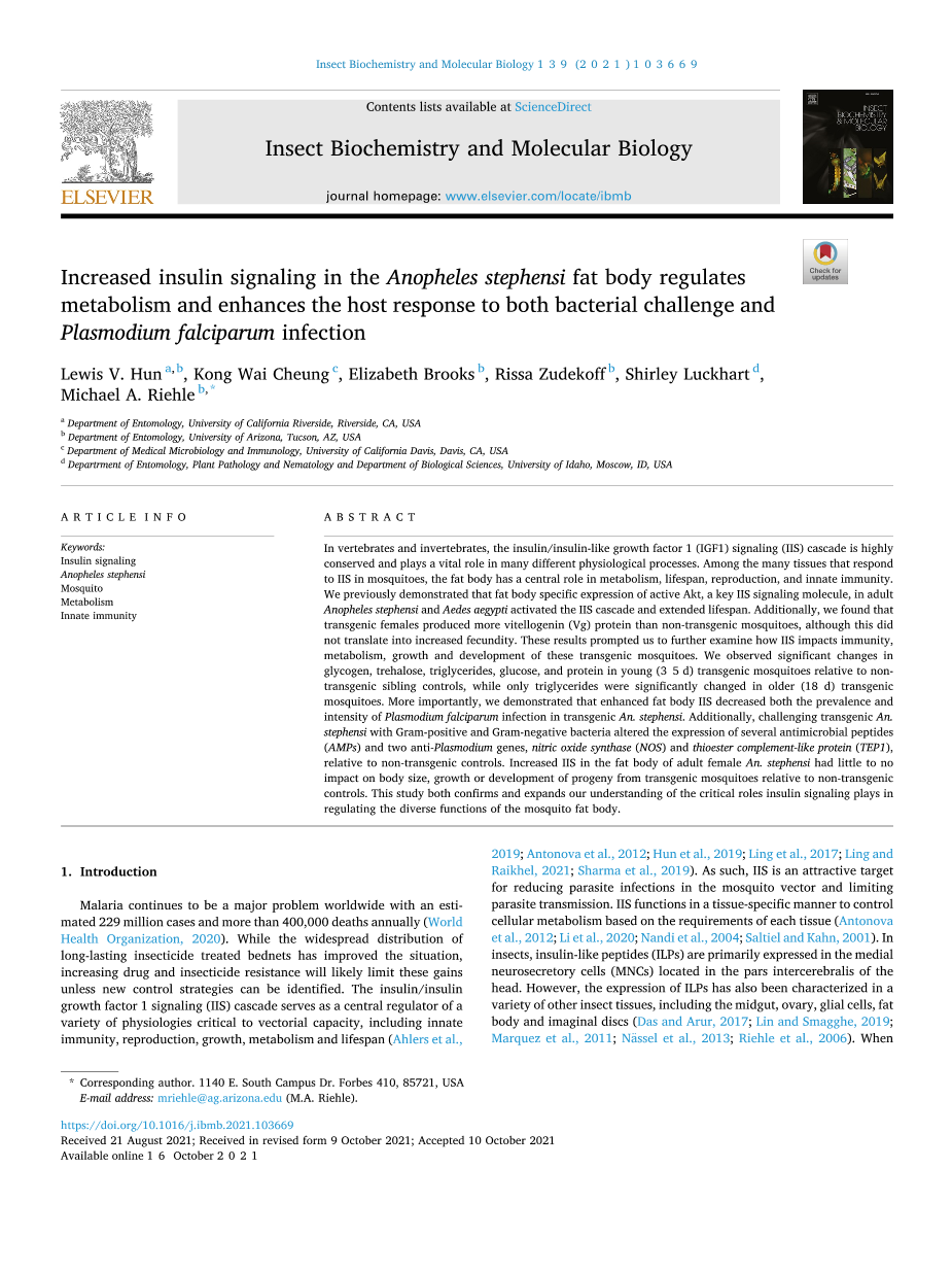 原文作者 Lewis V. Huna , b , Kong Wai Cheung c , Elizabeth Brooksb , Rissa Zudekoff b , Shirley Luckhart d ,Michael A. Riehleb , *