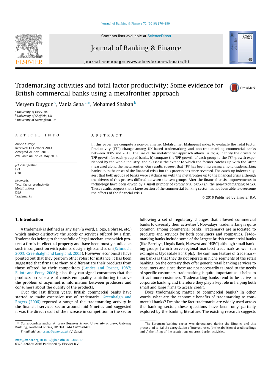 商标活动和全要素生产率:英国商业银行使用元前沿函数方法的一些证据