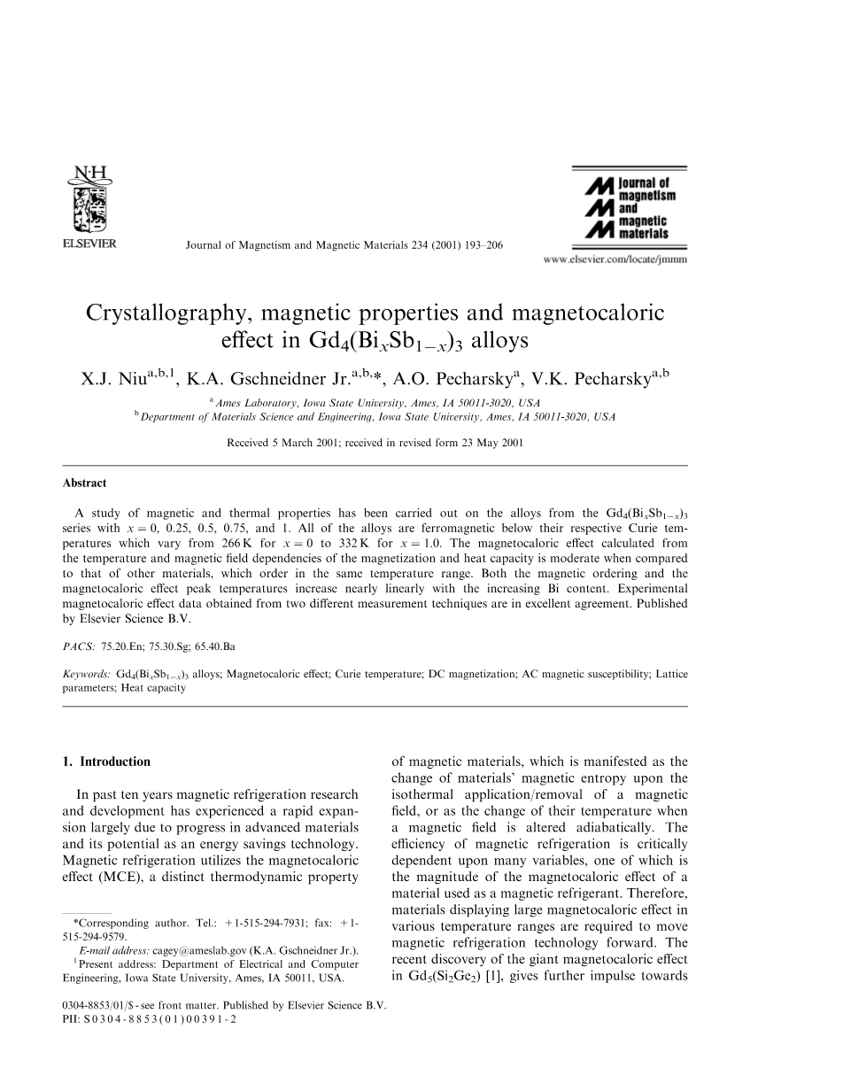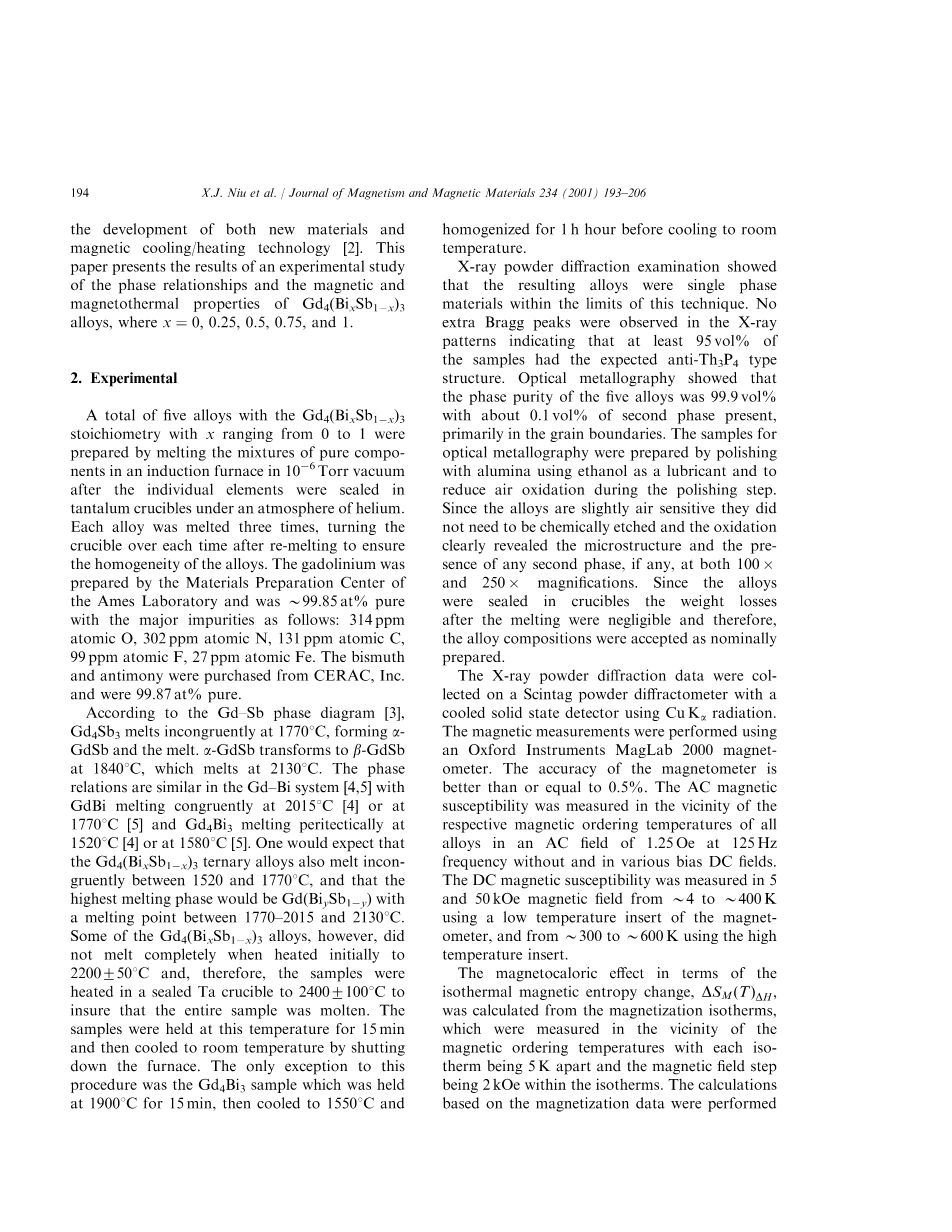 Gd4(BixSb1-x)3合金的晶体学、磁性和磁热效应