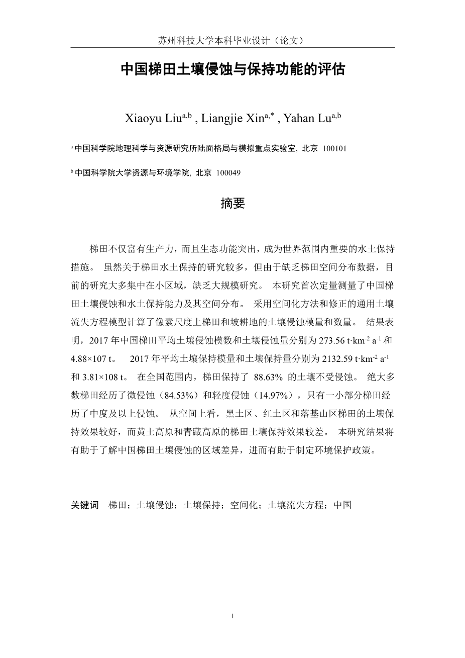 中国梯田土壤侵蚀与保持功能的评估外文翻译资料