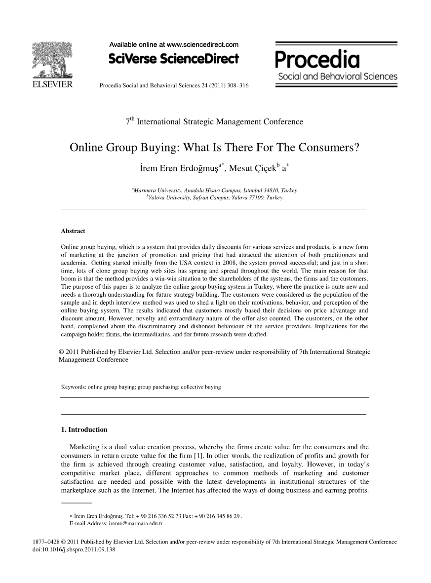 网上团购是一种为各种服务和产品提供日常折扣的模式,是一种介于促销和定价之间的新型营销形式,引起了从业者和学术界的关注。从2008年的美国开始,该模式被证明是成功的;在短时间内,大量团购网站如雨后春笋般涌现并遍布全球。出现这一现象的主要原因是,这种模式给企业和用户带来了双赢。本文的目的是分析土耳其的在线团购系统,在土耳其,这种模式是非常新的,需要对未来的战略建设有一个全面的了解。选择一些用户作为样本人群,采用深度访谈法来了解他们的动机、行为和对在线购买模式的感知。结果表明,顾客的决策主要基于价格优势和折扣金额,团购活动的新颖性和非凡性也很重要。提出了用户抱怨服务提供商的歧视和不诚实行为,对团购活动企业、中介机构和未来研究的影响。