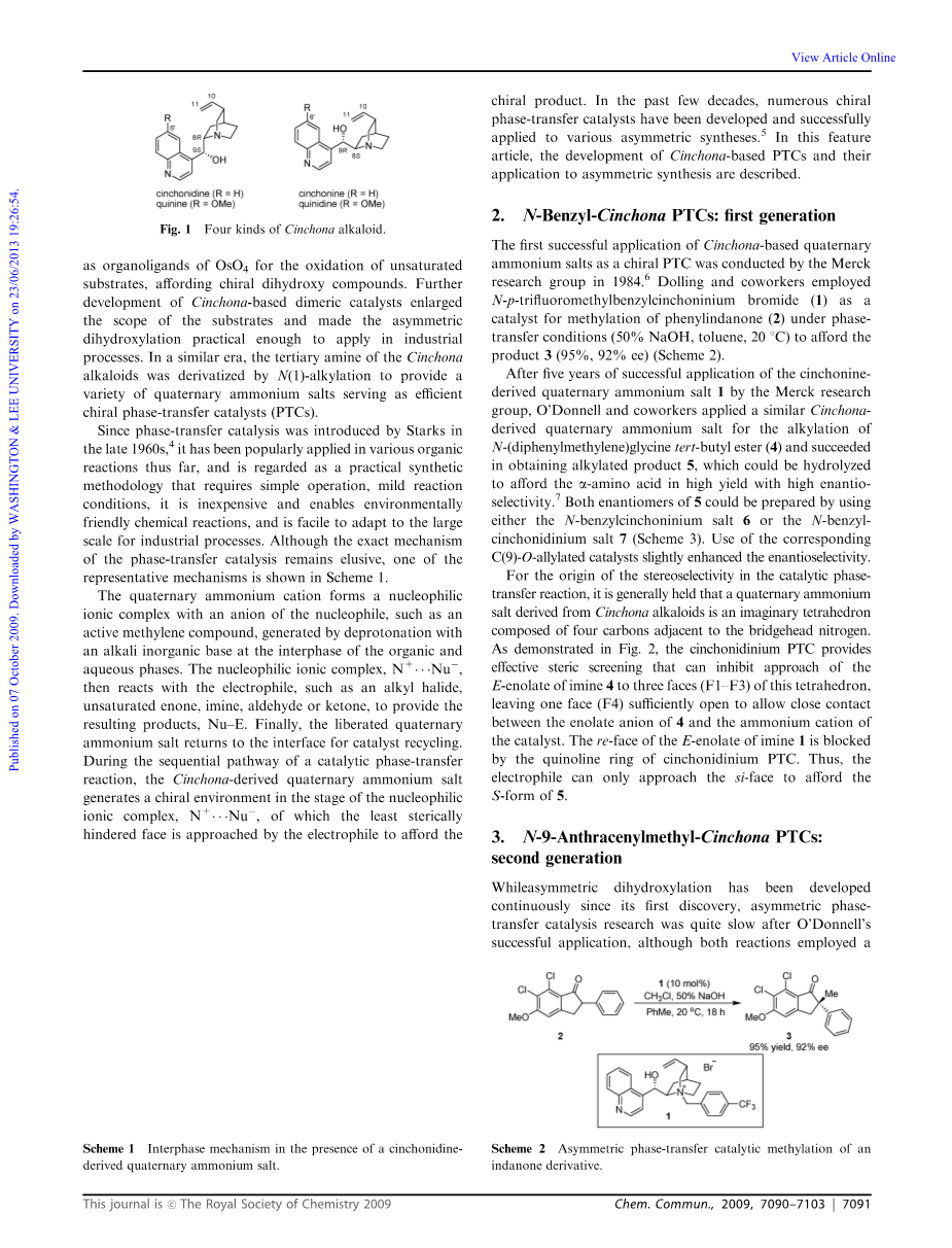 金鸡纳衍生的相转移催化剂已被开发并成功应用于各种