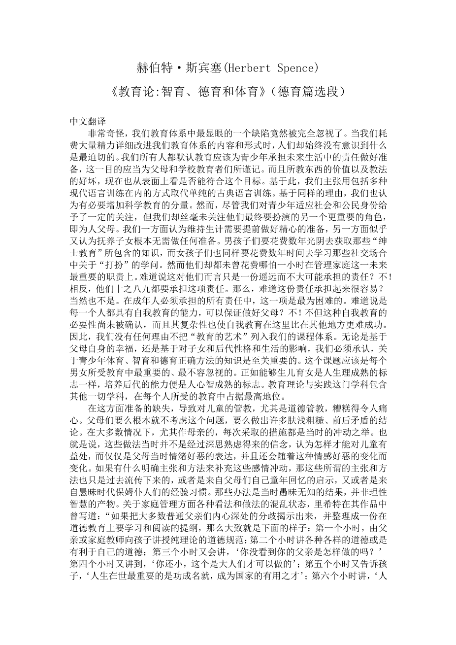 《教育论:智育、德育和体育》(德育篇选段)