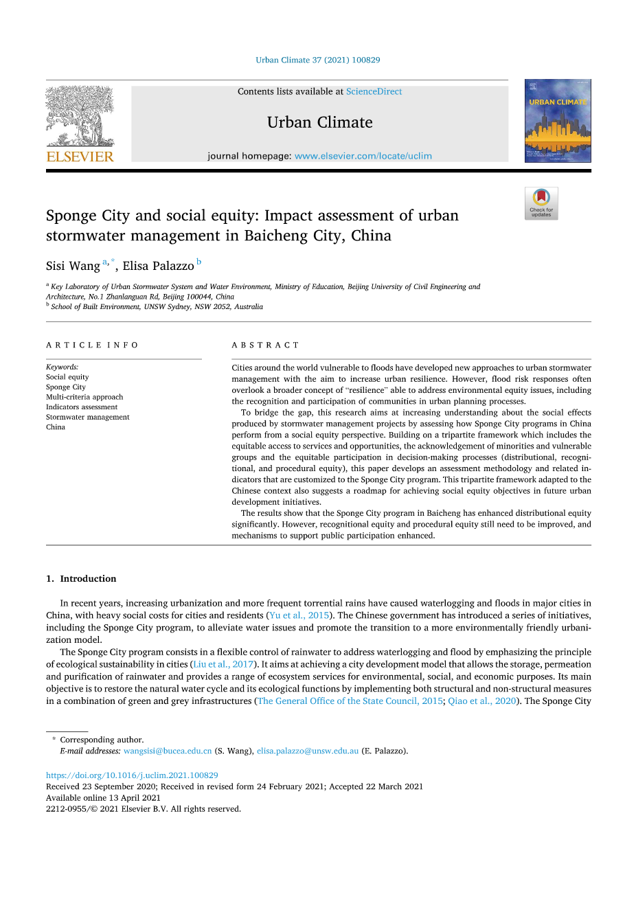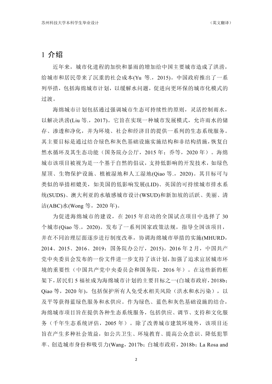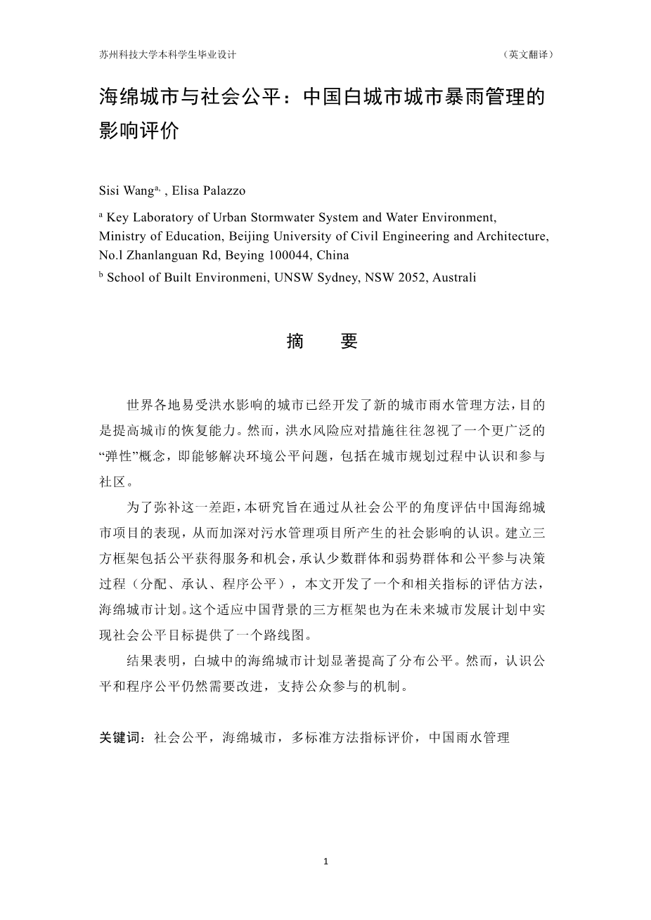 海绵城市与社会公平:中国白城市城市暴雨管理的影响评价外文翻译资料