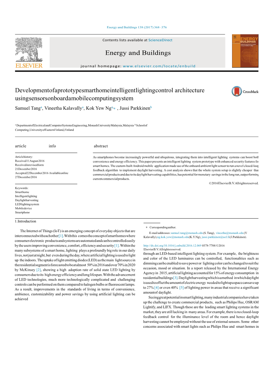随着智能手机变得越来越强大并且无处不在,将其整合到智能照明系统中可以提高机器人的便利性和能源效率。本文介绍了一个具有增强安全功能的智能照明系统原型,用于智能家居。定制的安卓移动应用程序利用板载环境光传感器来运行一个新颖的闭环反馈算法来实现日光采集。成本分析表明,整个系统的设置比商业产品略微便宜,而且由于它的日光采集能力,在长期内有可能形成货币储蓄,超过目前的商业产品。