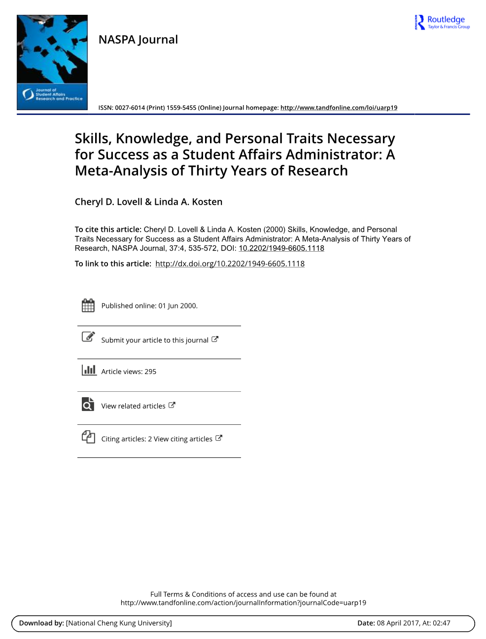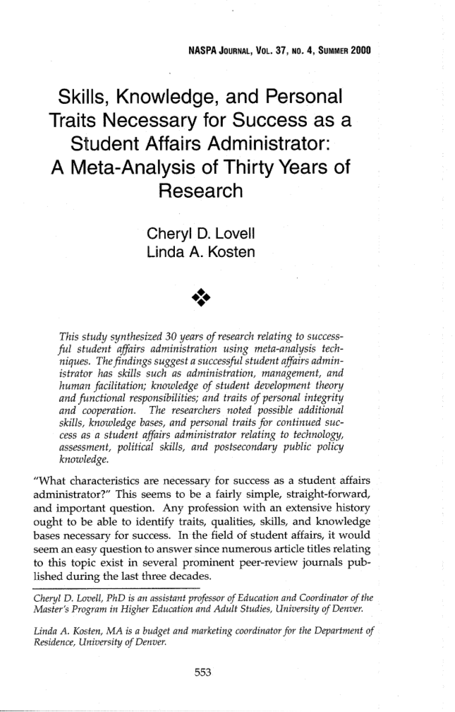 必要的技能、知识和个人特质对于一个成功的学生事务管理——30年的研究的荟萃分析
