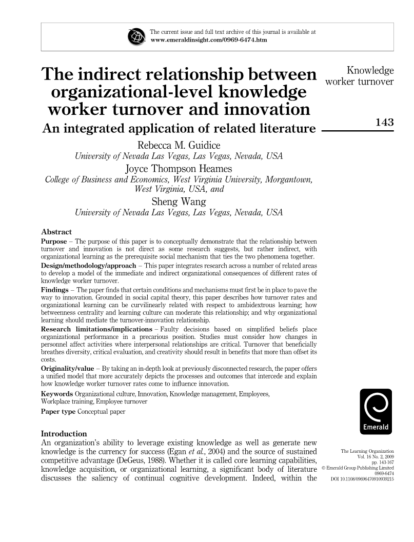 研究限制/影响—基于简化信念的错误决策将组织绩效置于不稳定的位置,研究必须考虑人际关系如何影响与人际关系至关重要的活动。有利地吸引多元化,关键评估和创造力的员工流失应导致更多的抵消其成本的收益。通过深入研究以前不连贯的研究,本文提供了一个统一的模型,更准确的描述了过程和结果,介绍了知识型员工流失率如何影响创新。