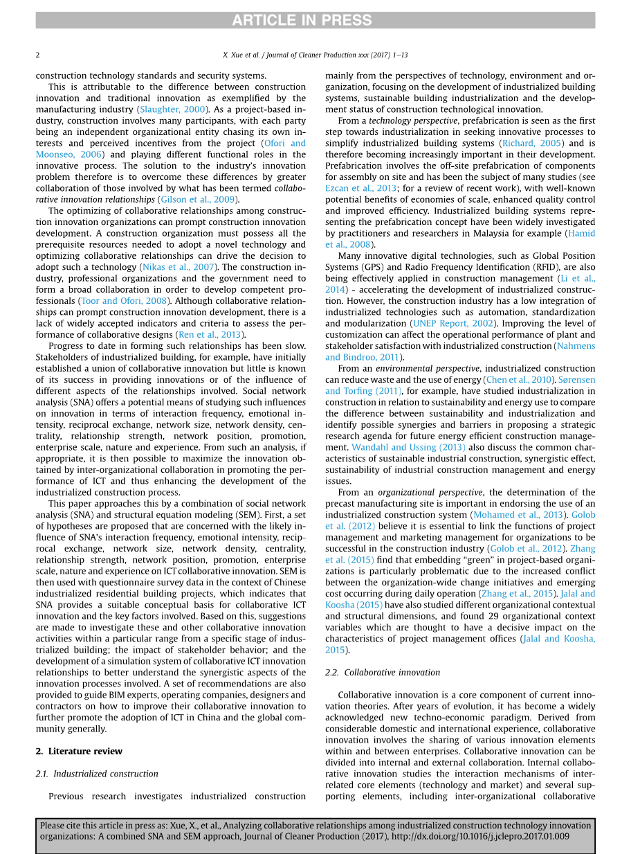 在开展SEM以展示基于SNA的关键因素之间和之内的关系的强度及其对协同创新的影响的基础上,建立在Shapira和Yehiel(2011)的基础上,提出了工业与学术界合作的创新平台;薛等(2014)强调合作关键作用的建筑创新概念框架;和Park等人(2004)提出了基于多个个体和情境影响因素的系